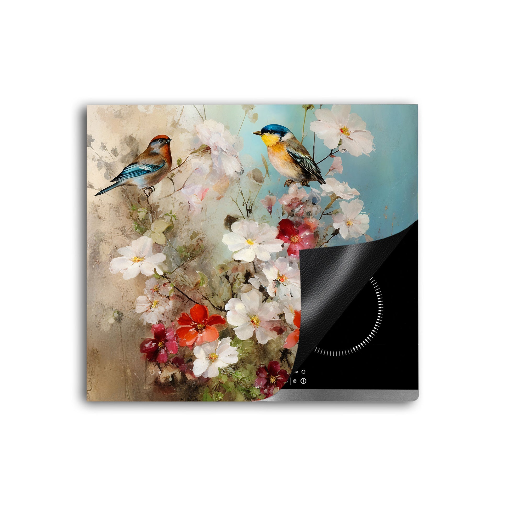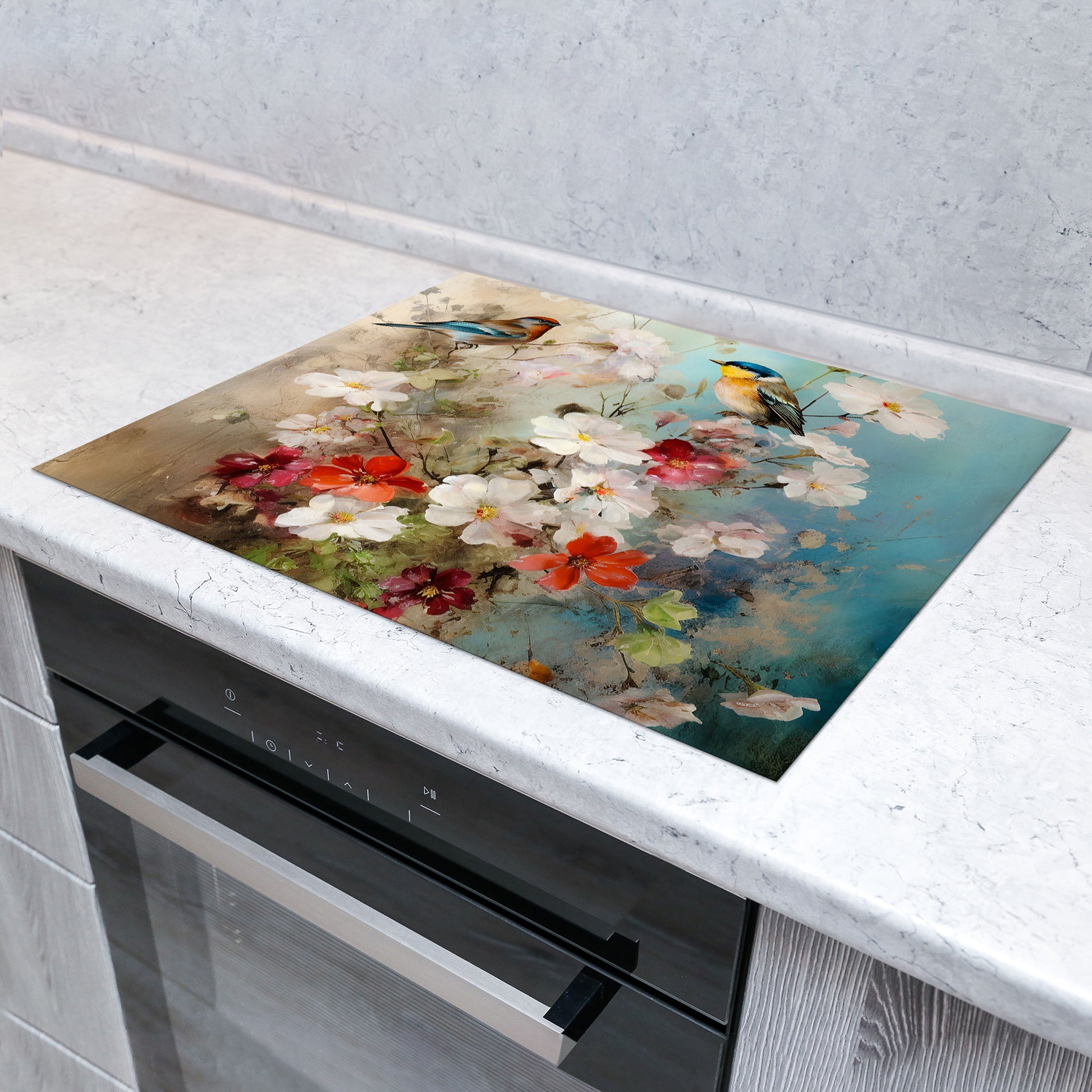 Abstrakt Blumen mit Vögel Herdabdeckplatte Induktionsschutz für Ceranfeld & Küche Deko