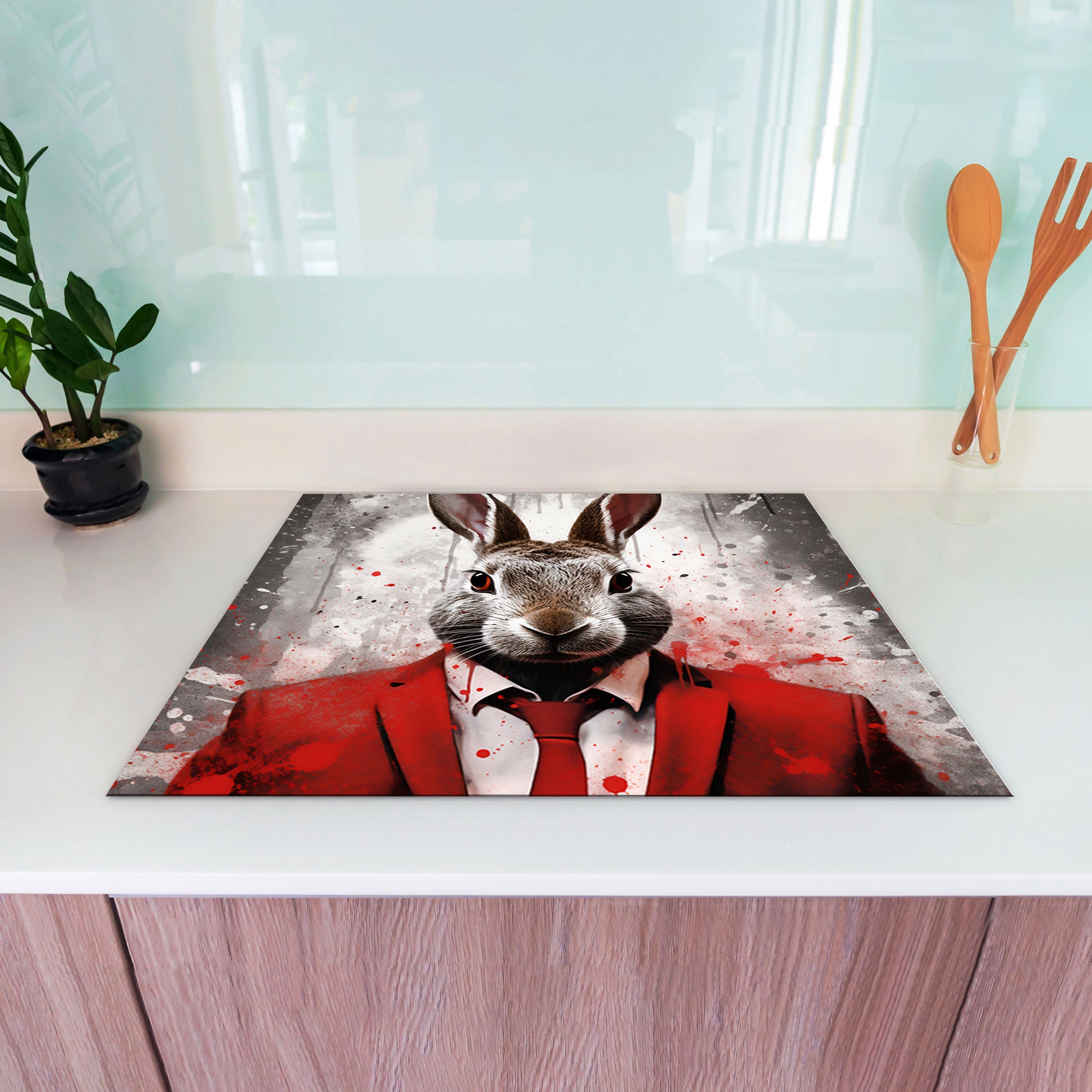 Abstrakt Hase Pop Art Herdabdeckplatte Induktionsschutz für Ceranfeld & Küche Deko