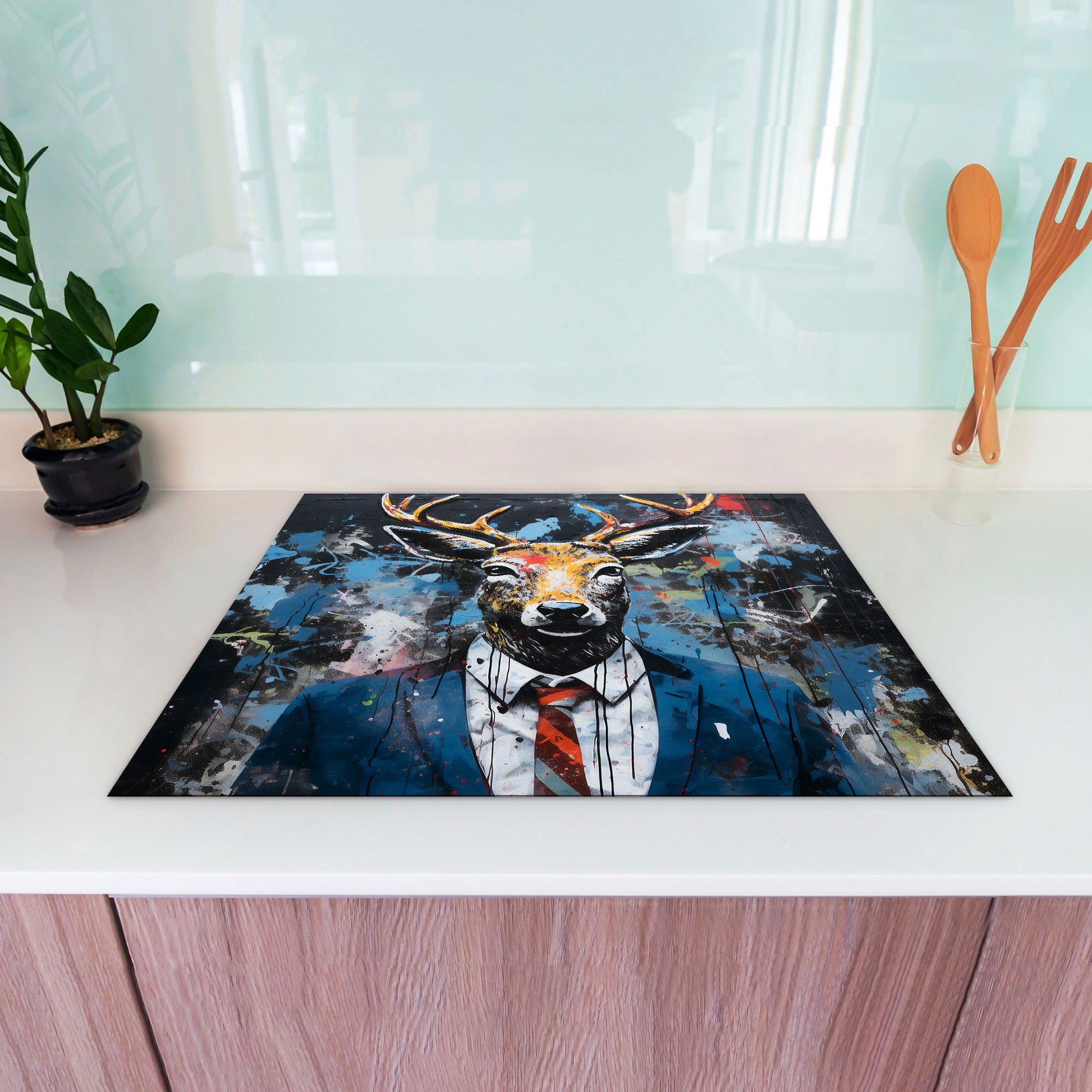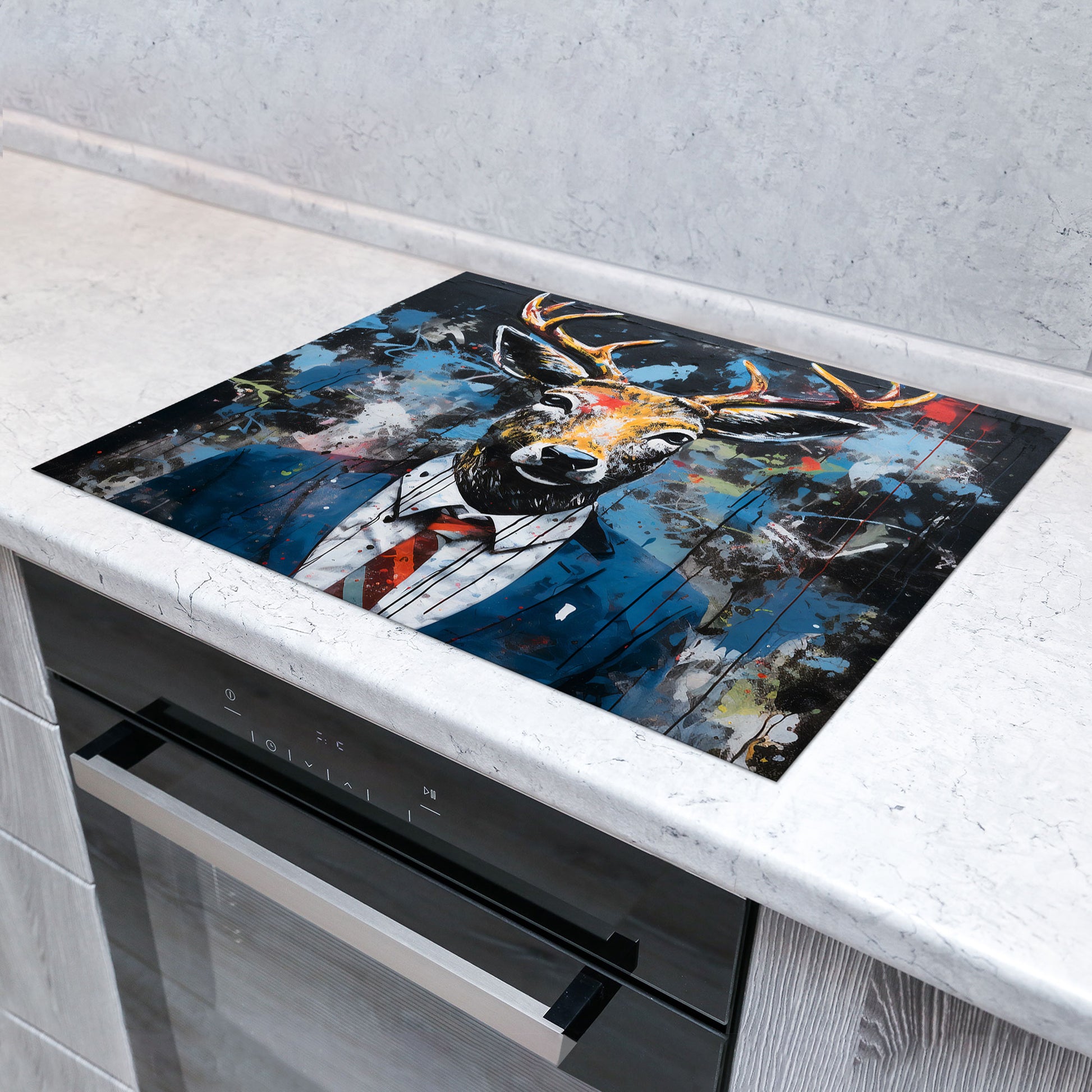 Abstrakt Hirsch im Anzug Herdabdeckplatte Induktionsschutz für Ceranfeld & Küche Deko