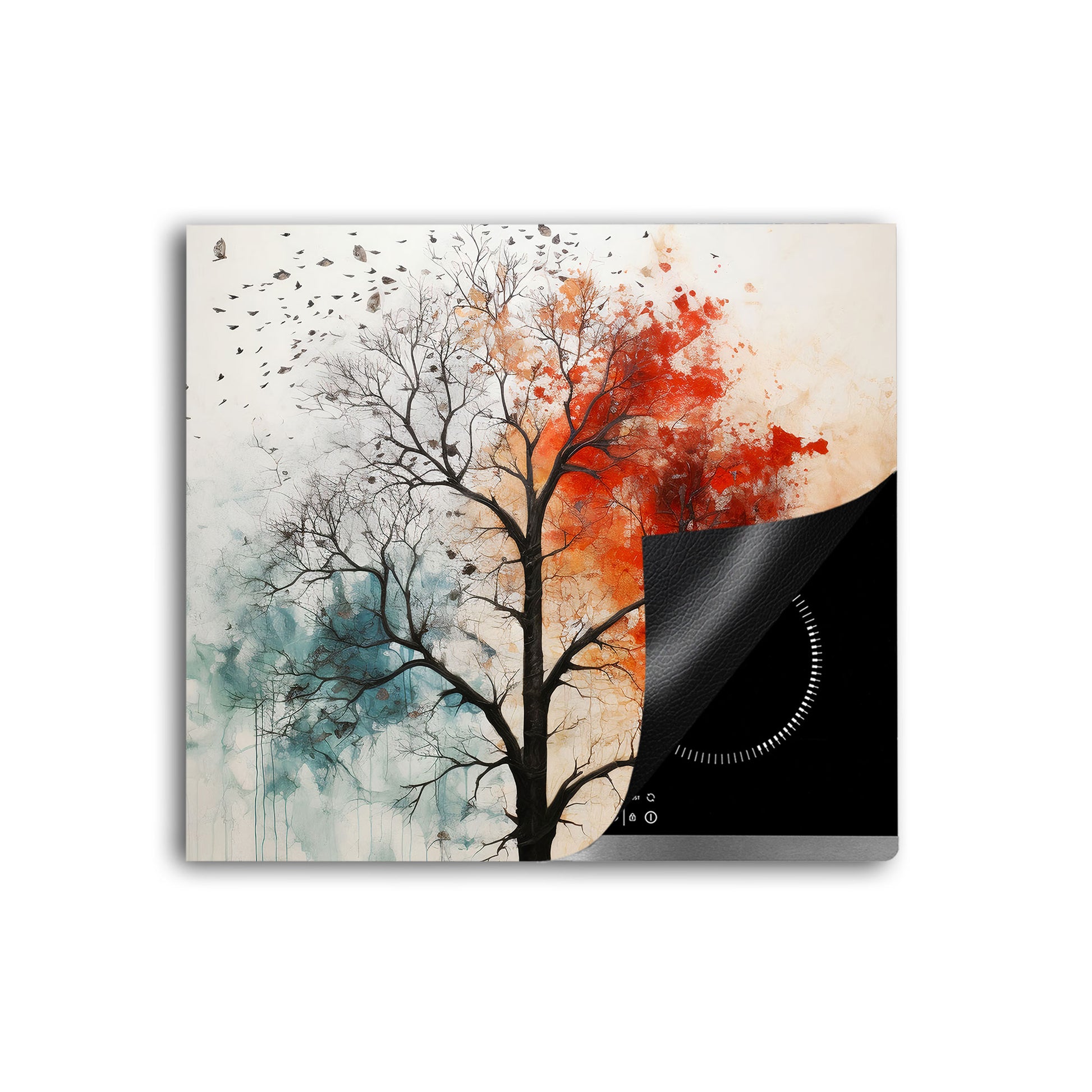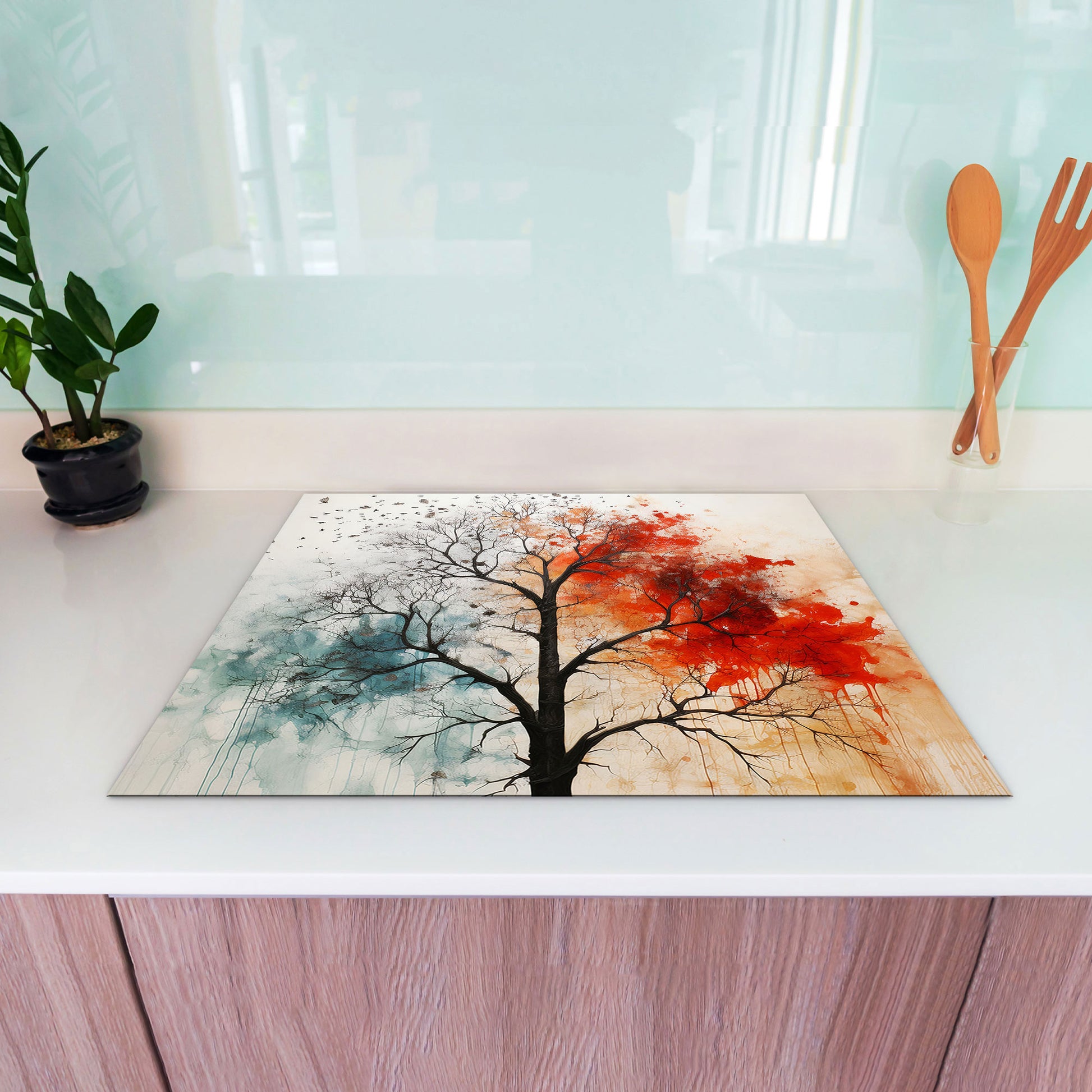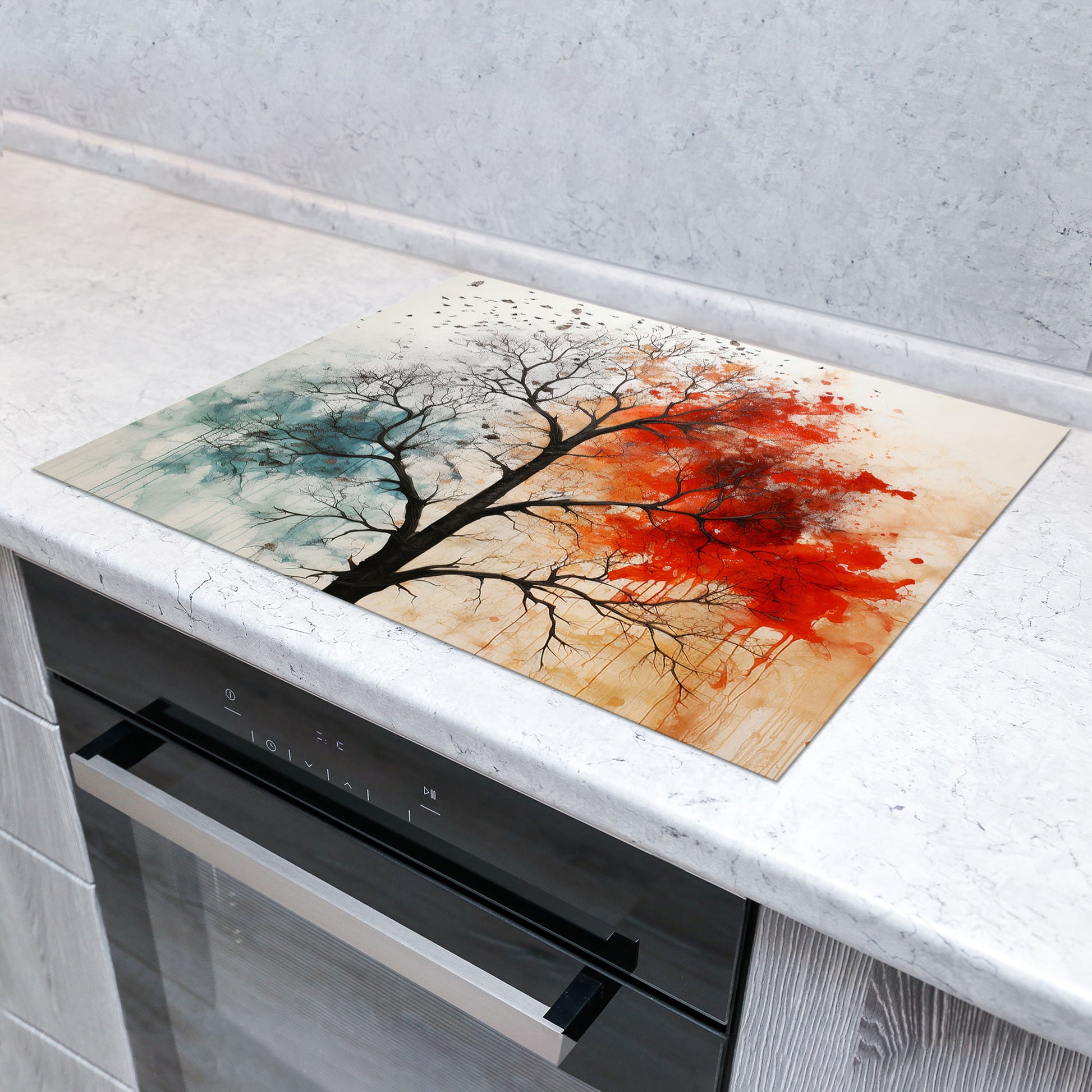 Abstrakt kahler Baum rot blau Herdabdeckplatte Induktionsschutz für Ceranfeld & Küche Deko