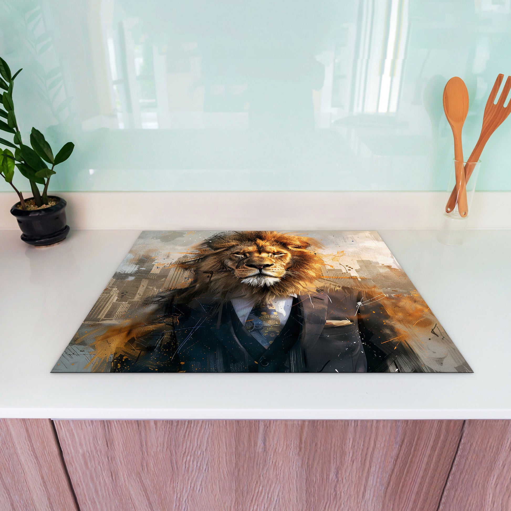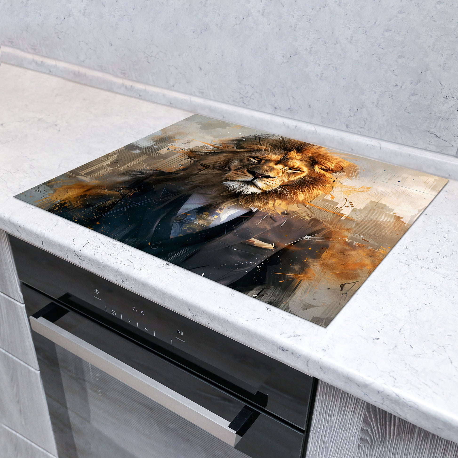 Abstrakt Löwe im Anzug Herdabdeckplatte Induktionsschutz für Ceranfeld & Küche Deko