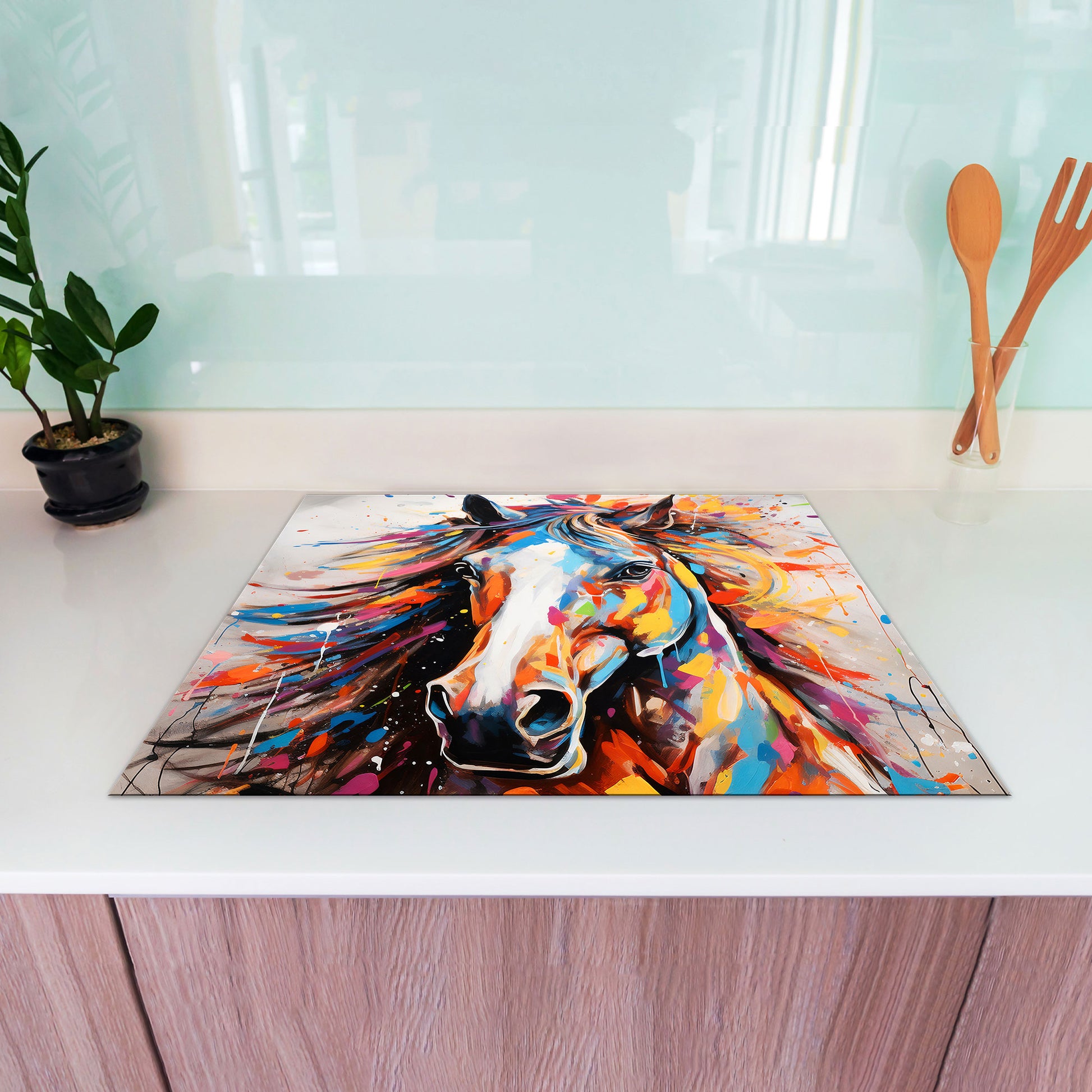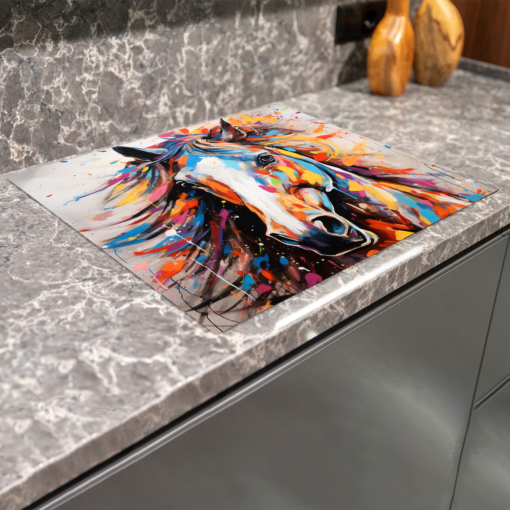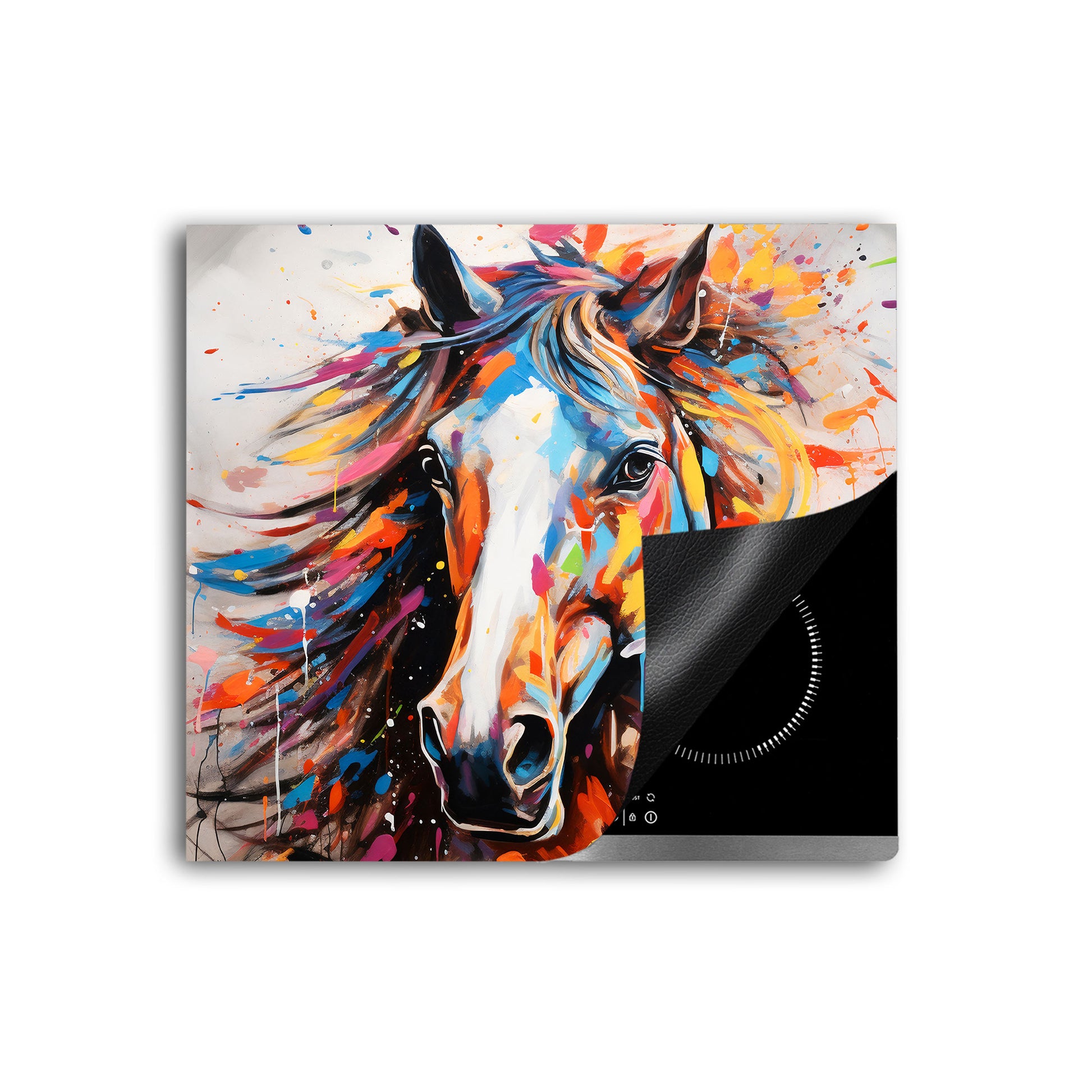 Abstrakt Pferd Pop Art Herdabdeckplatte Induktionsschutz für Ceranfeld & Küche Deko