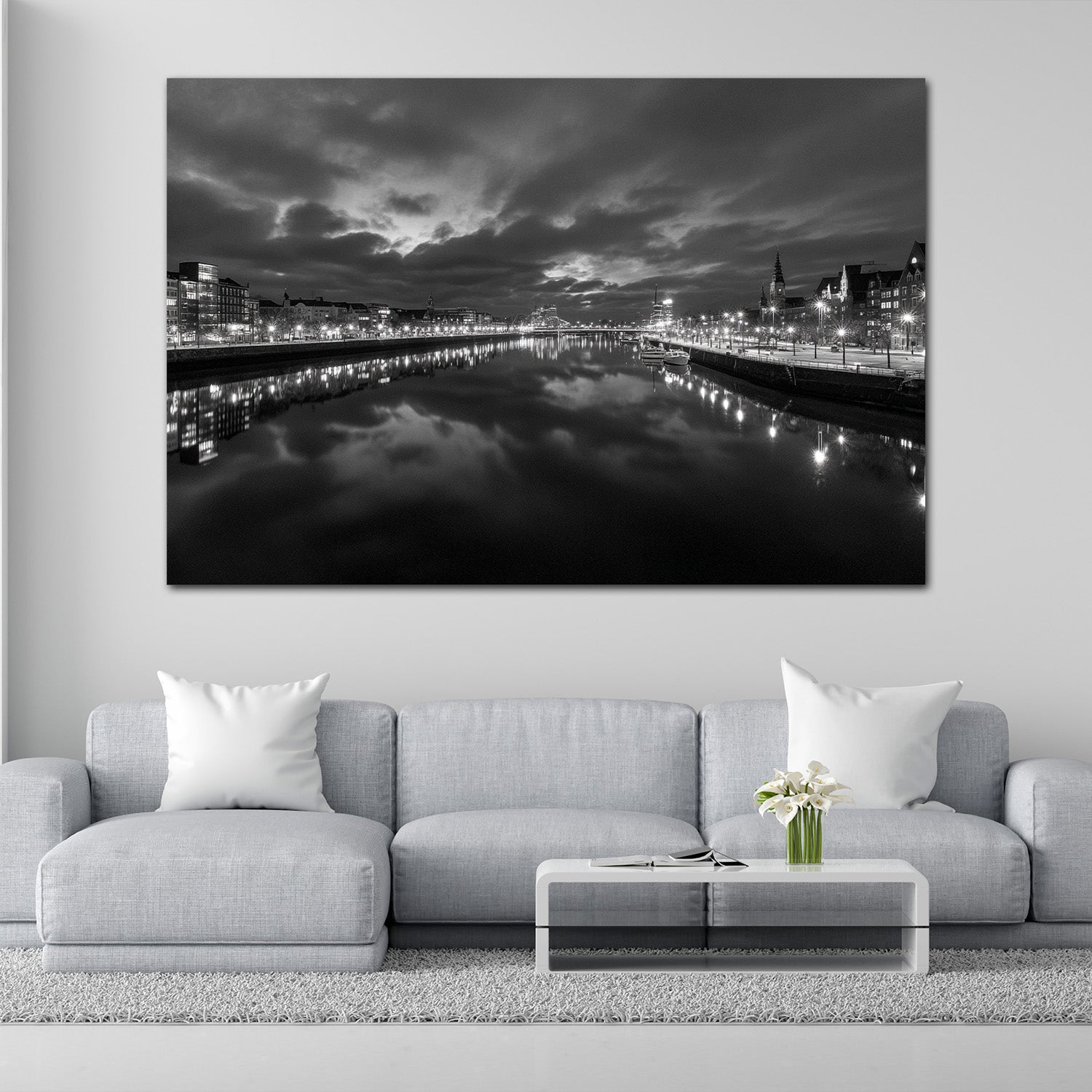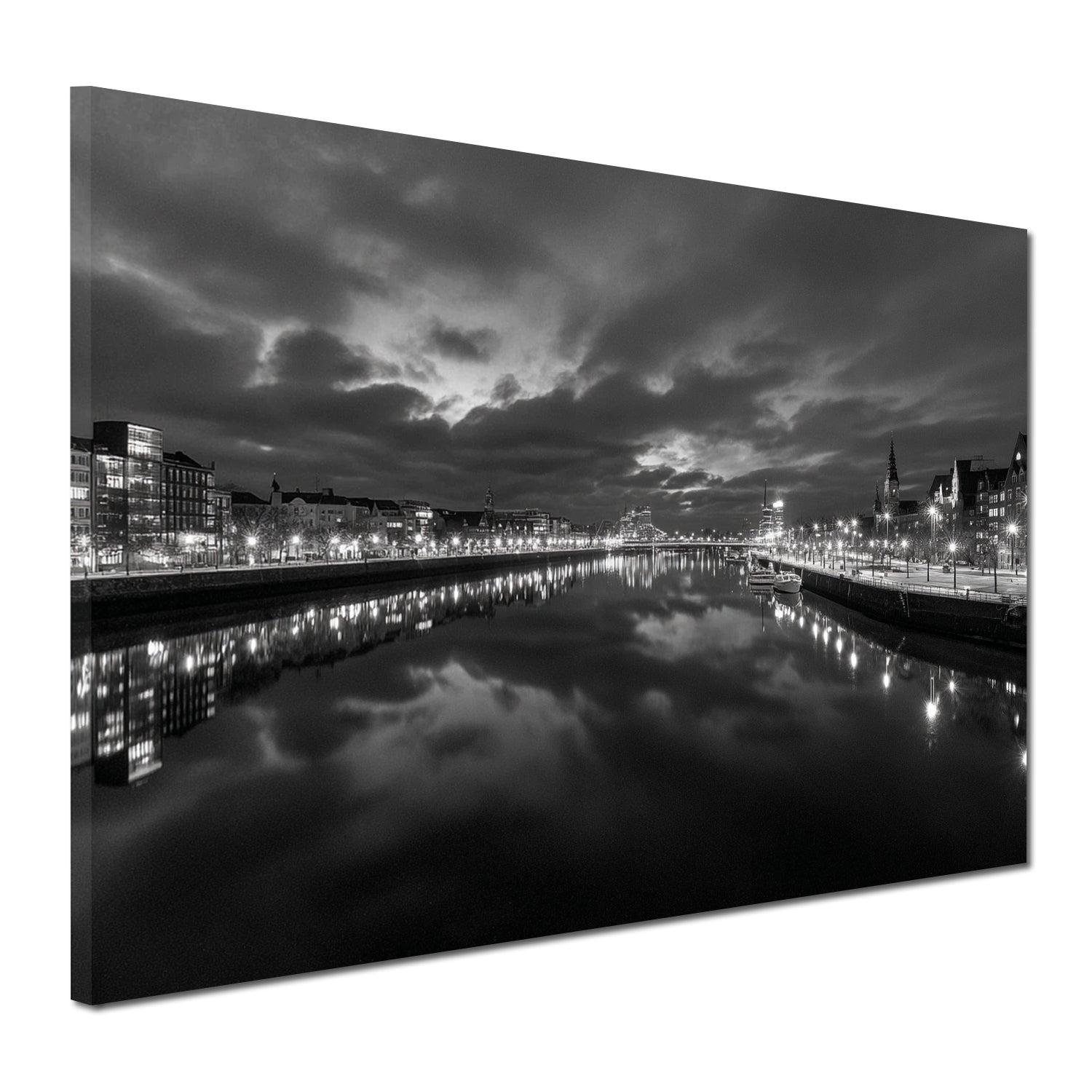 Bremen Weserufer Skyline schwarz weiß Spiegelung Wandbild