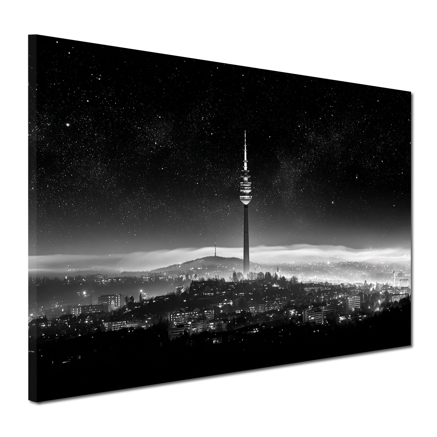 Fernsehturm Stuttgart Nachtpanorama Sterne schwarz weiß Wandbild