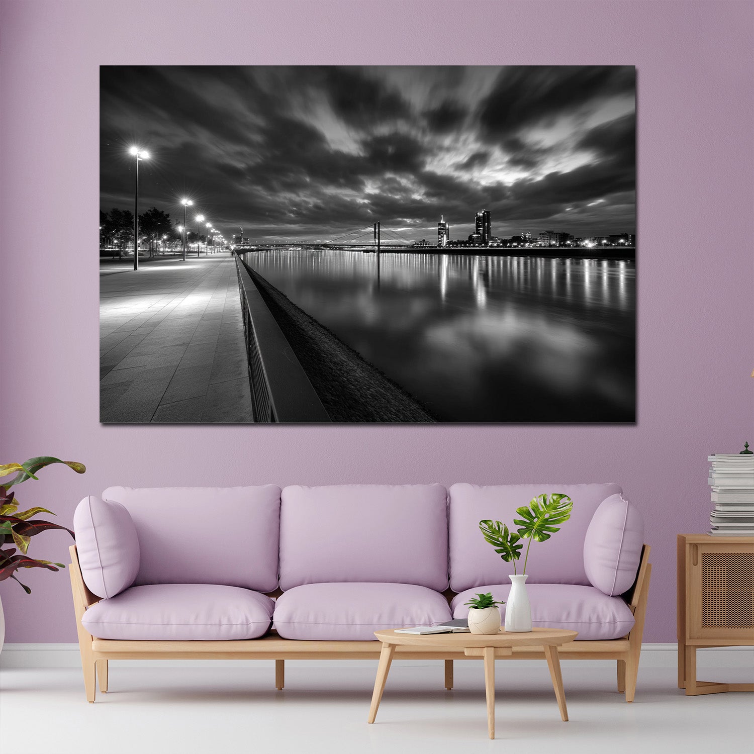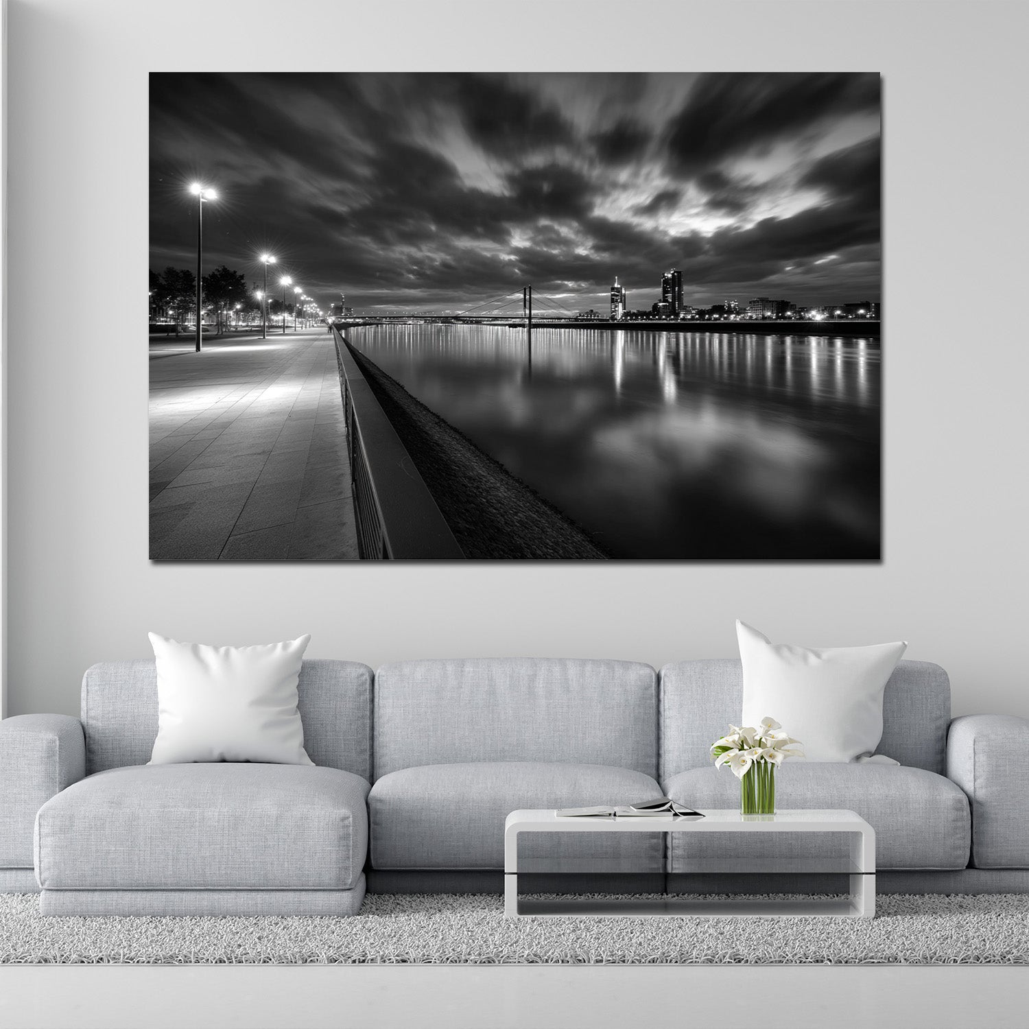 Flussufer Düsseldorf schwarz weiß Rheinpromenade Wandbild