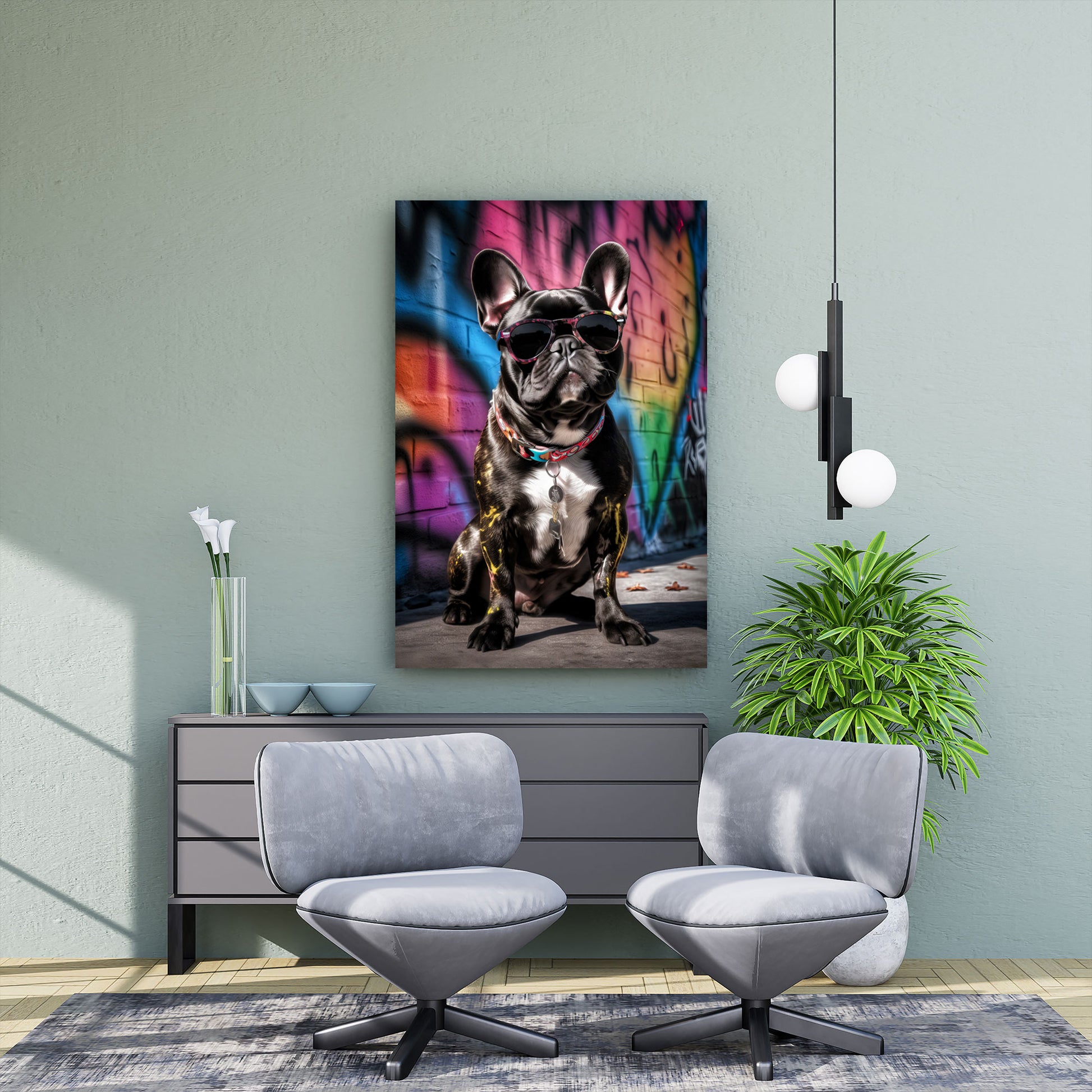 Französische Bulldogge mit Sonnenbrille Graffiti Wandbild