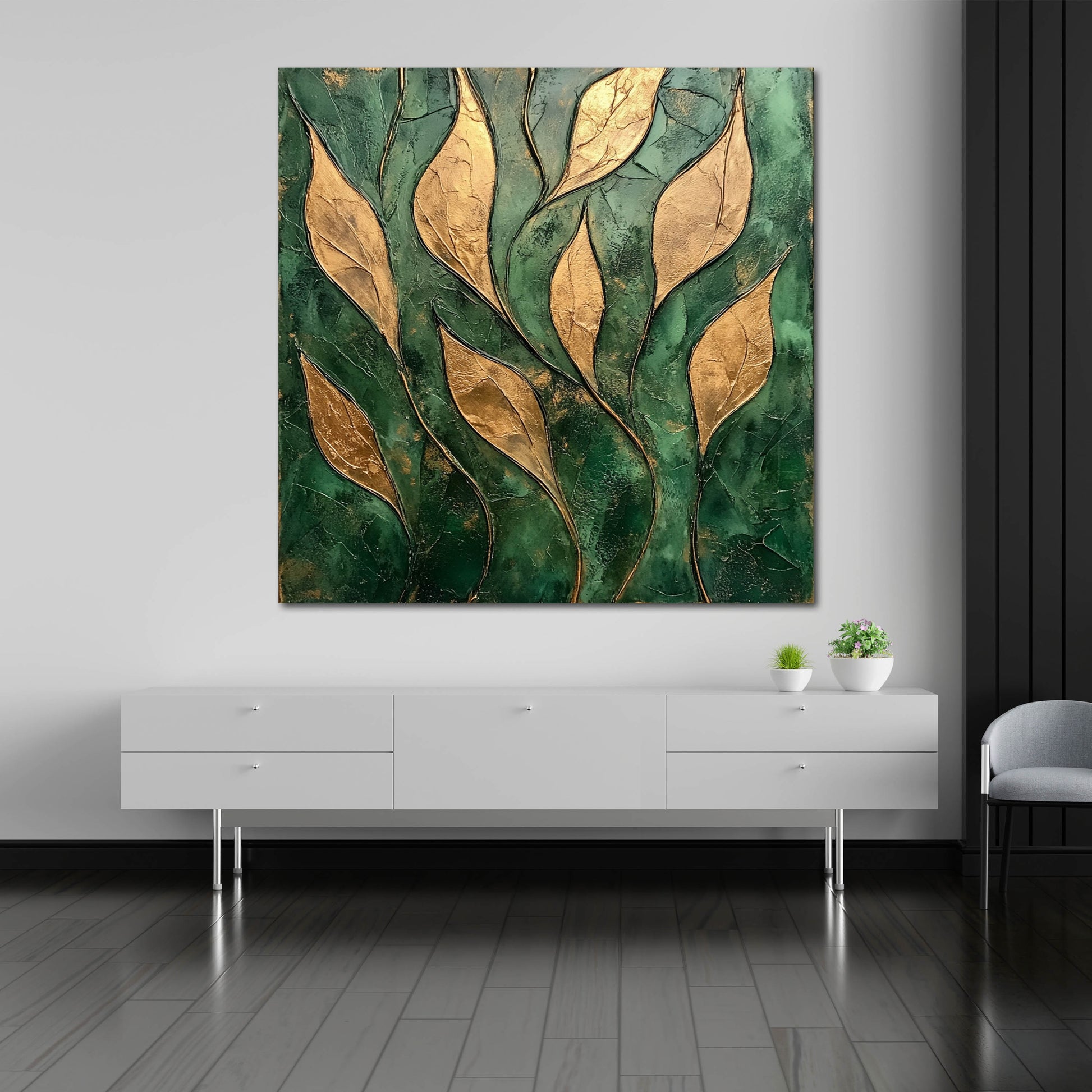 Goldene Blätter Struktur Grün Metallisch abstrakt Wandbild
