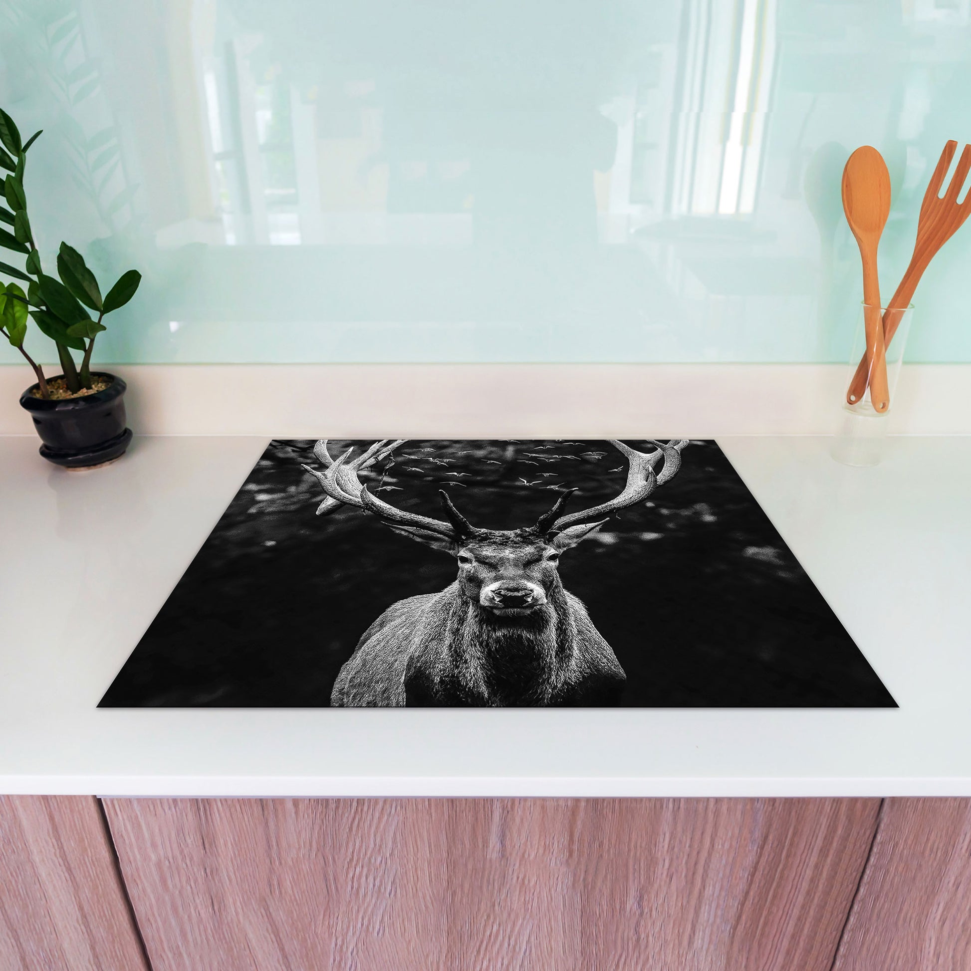 Hirsch abstrakt Deep Forest Herdabdeckplatte Induktionsschutz für Ceranfeld & Küche Deko