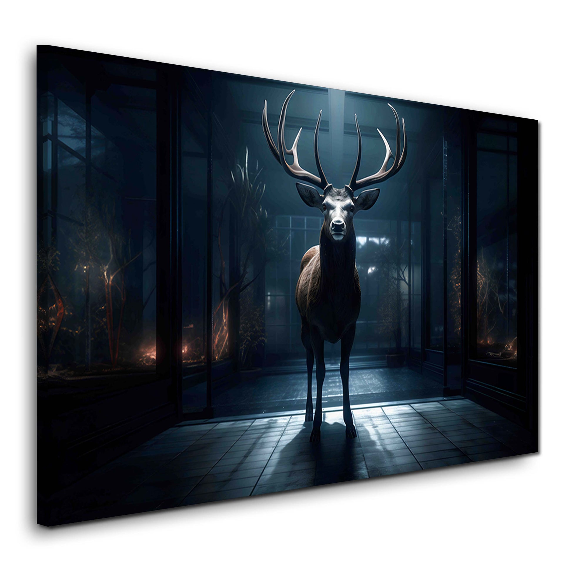 Hirsch Geweih Nacht Lichtstrahl Glas Architektur Wandbild