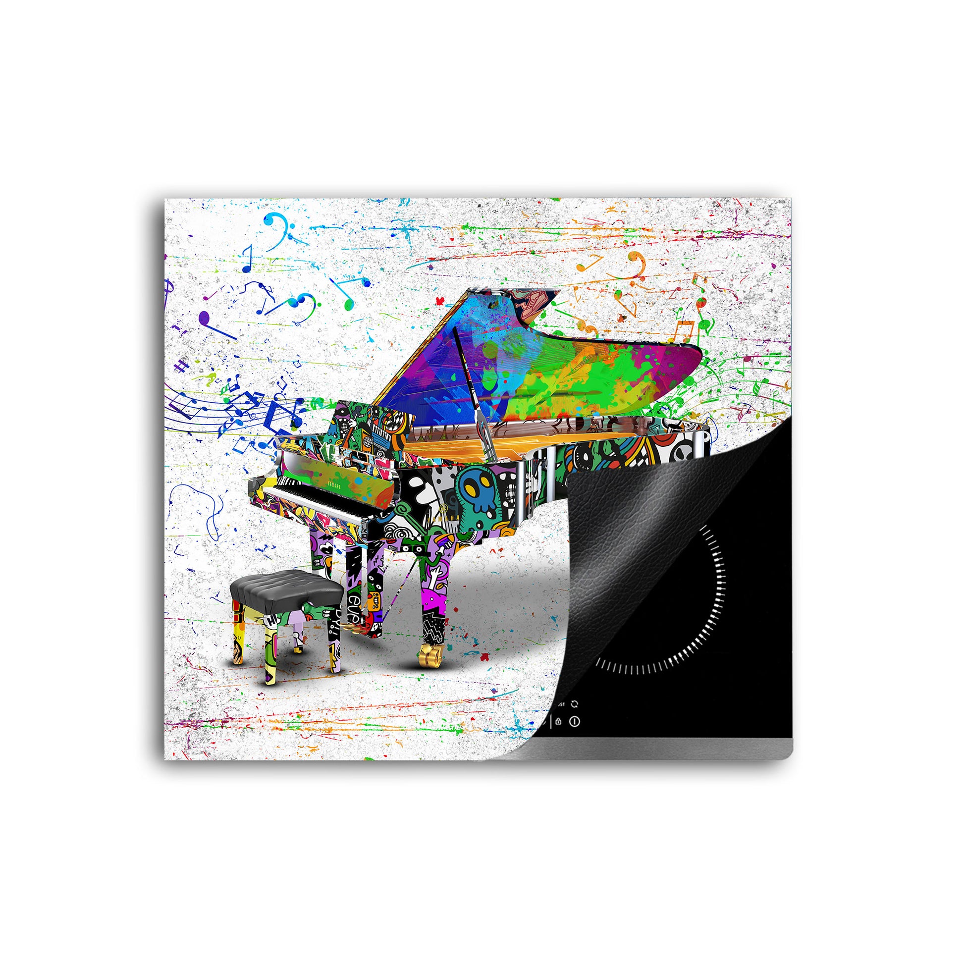 Klavier Graffiti Street Art Herdabdeckplatte Induktionsschutz für Ceranfeld & Küche Deko