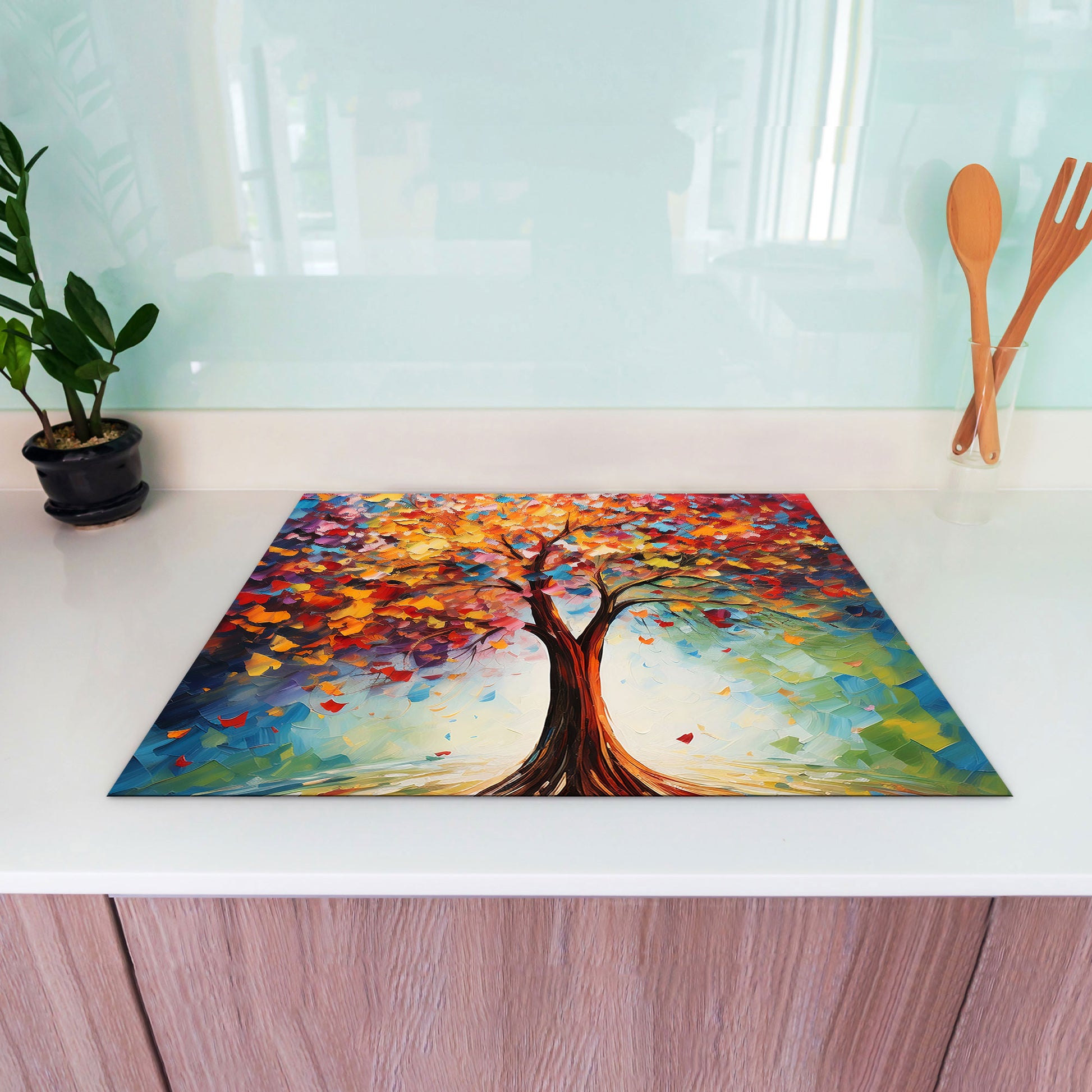 Lebensbaum abstrakt Herdabdeckplatte Induktionsschutz für Ceranfeld & Küche Deko