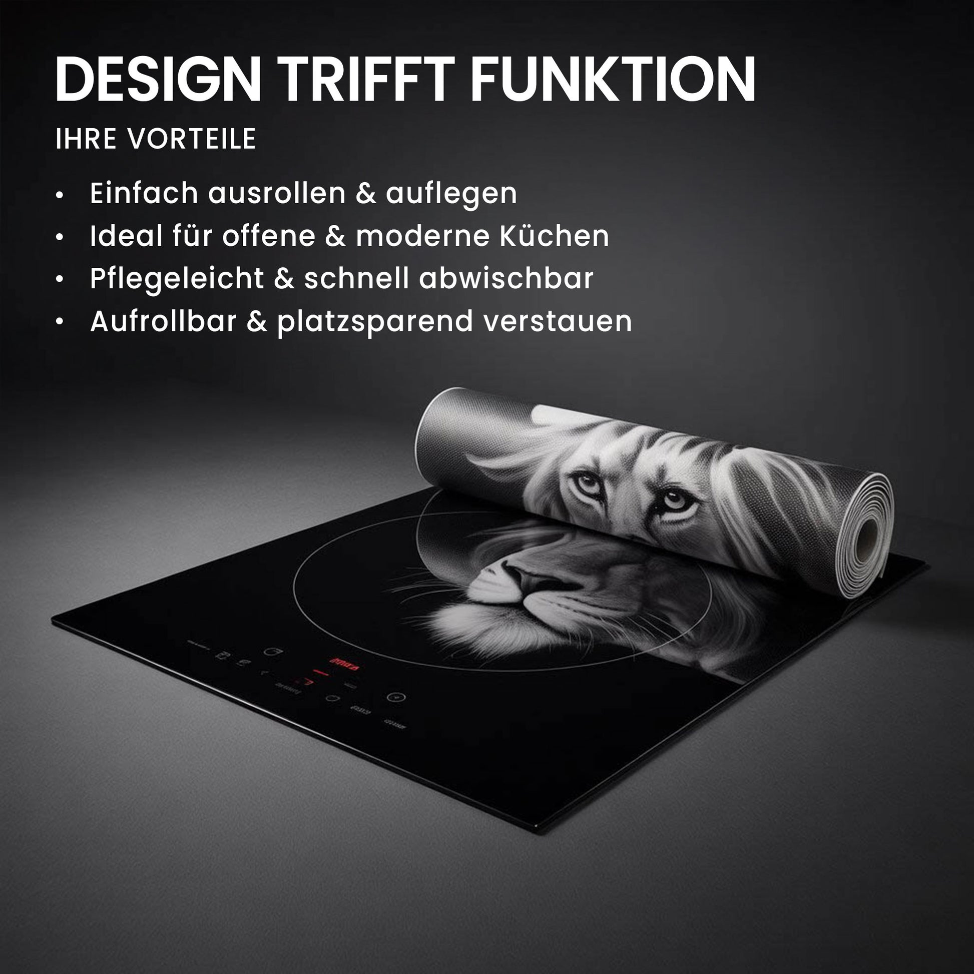 Unsere Herdabdeckplatten aus 2 mm starkem Vinyl vereinen Schutz, Funktionalität und Ästhetik. Sie bewahren Induktions- oder Ceranfelder vor Kratzern und Verschmutzungen – und verwandeln Ihr Kochfeld gleichzeitig in ein dekoratives Highlight.