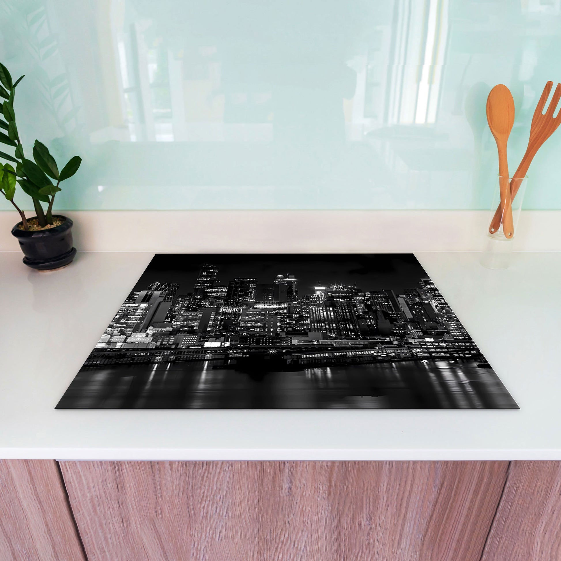 Modern schwarz weiss New York Herdabdeckplatte Induktionsschutz für Ceranfeld & Küche Deko