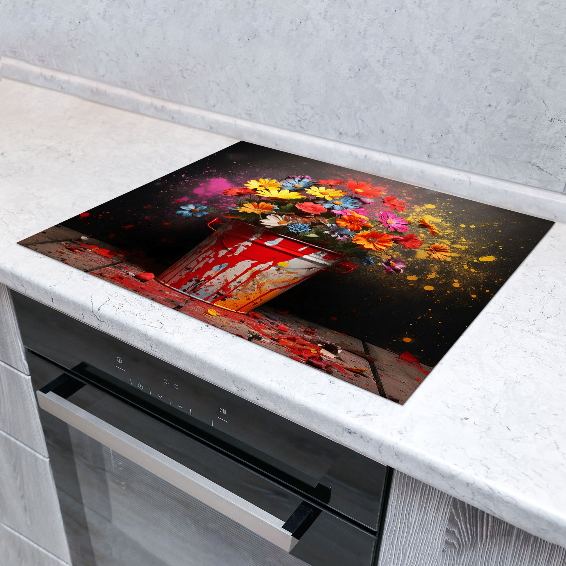 Pop Art Blumen in Eimer Herdabdeckplatte Induktionsschutz für Ceranfeld & Küche Deko
