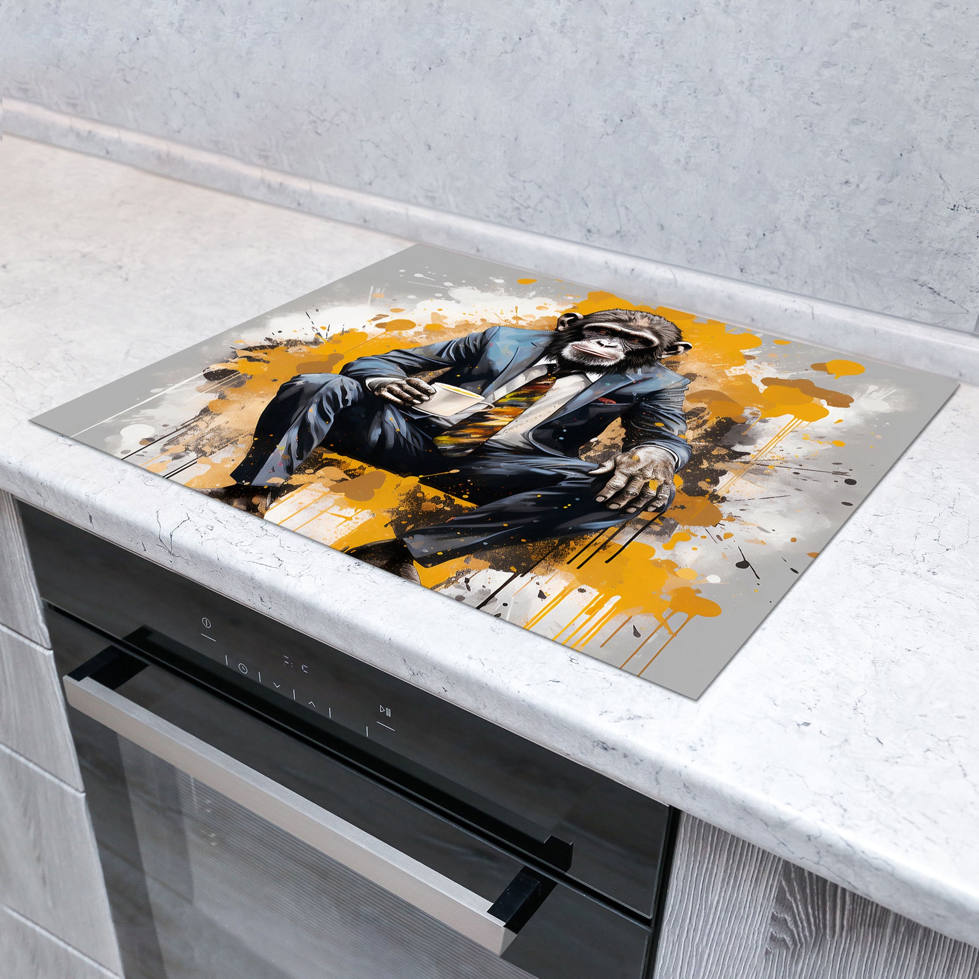 Pop Art Gorilla im Anzug Herdabdeckplatte Induktionsschutz für Ceranfeld & Küche Deko