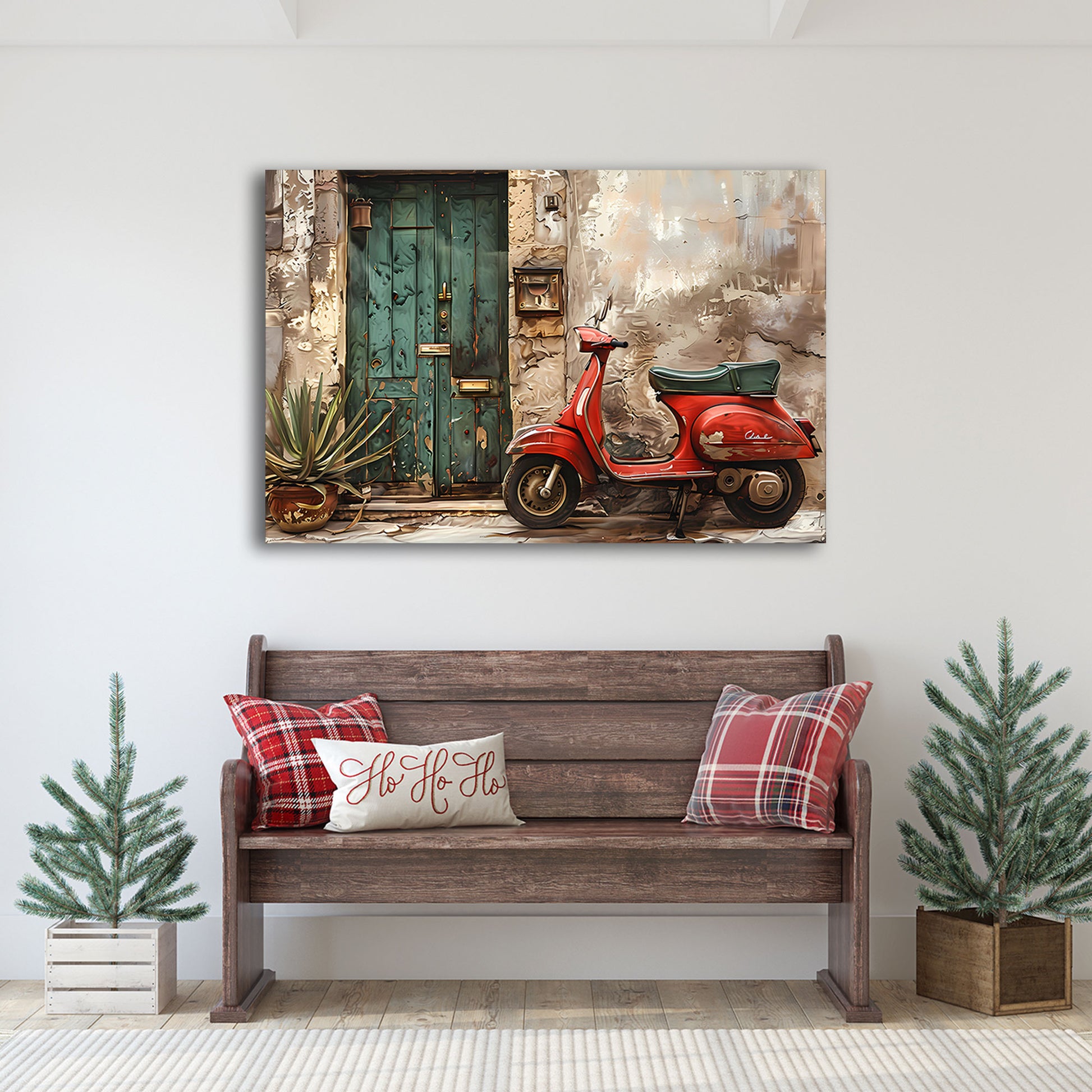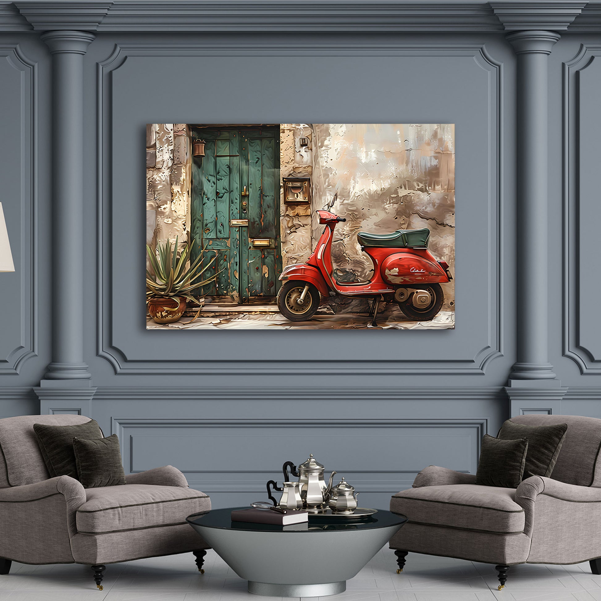 Rote Vespa Vintage Tür mediterrane Gasse Wandbild