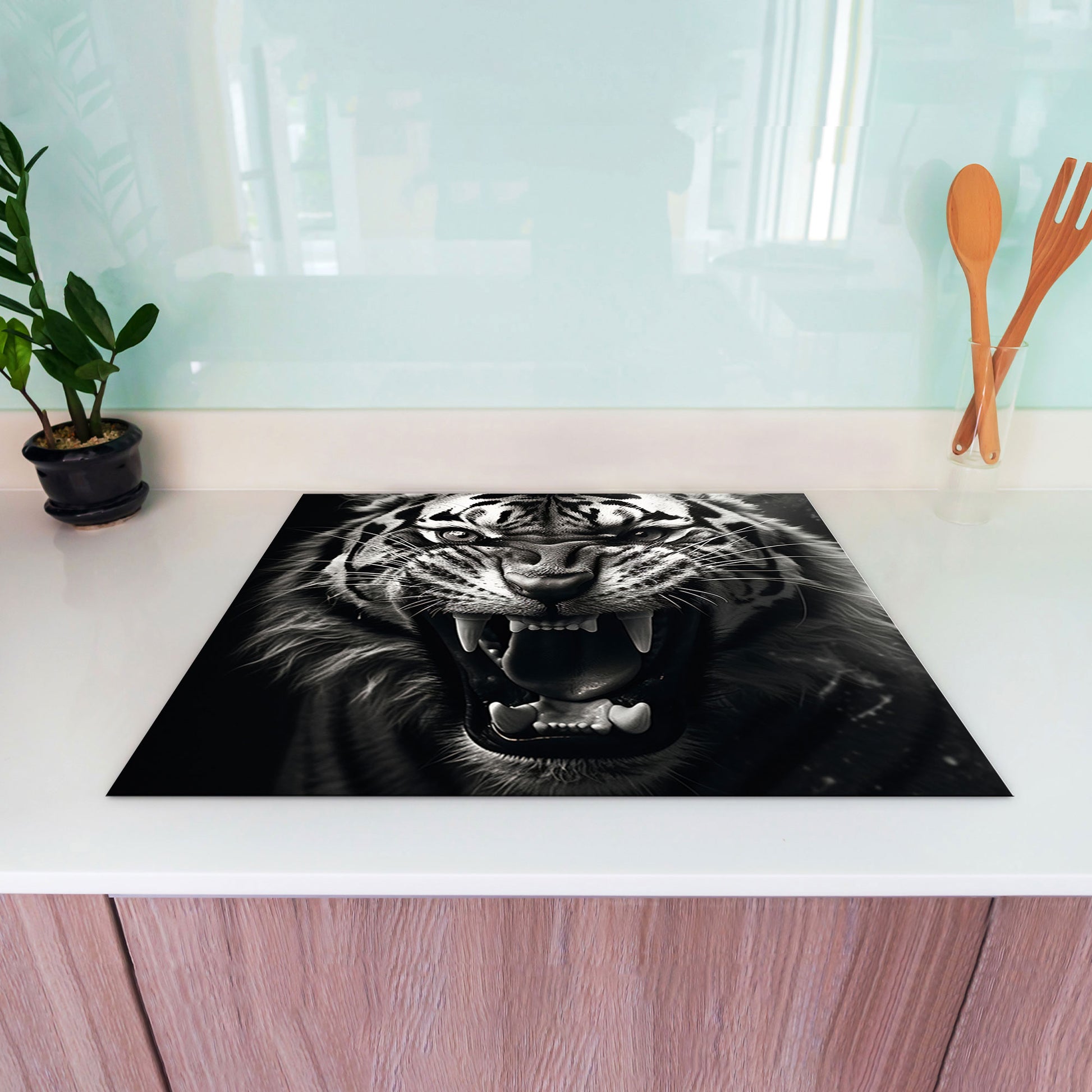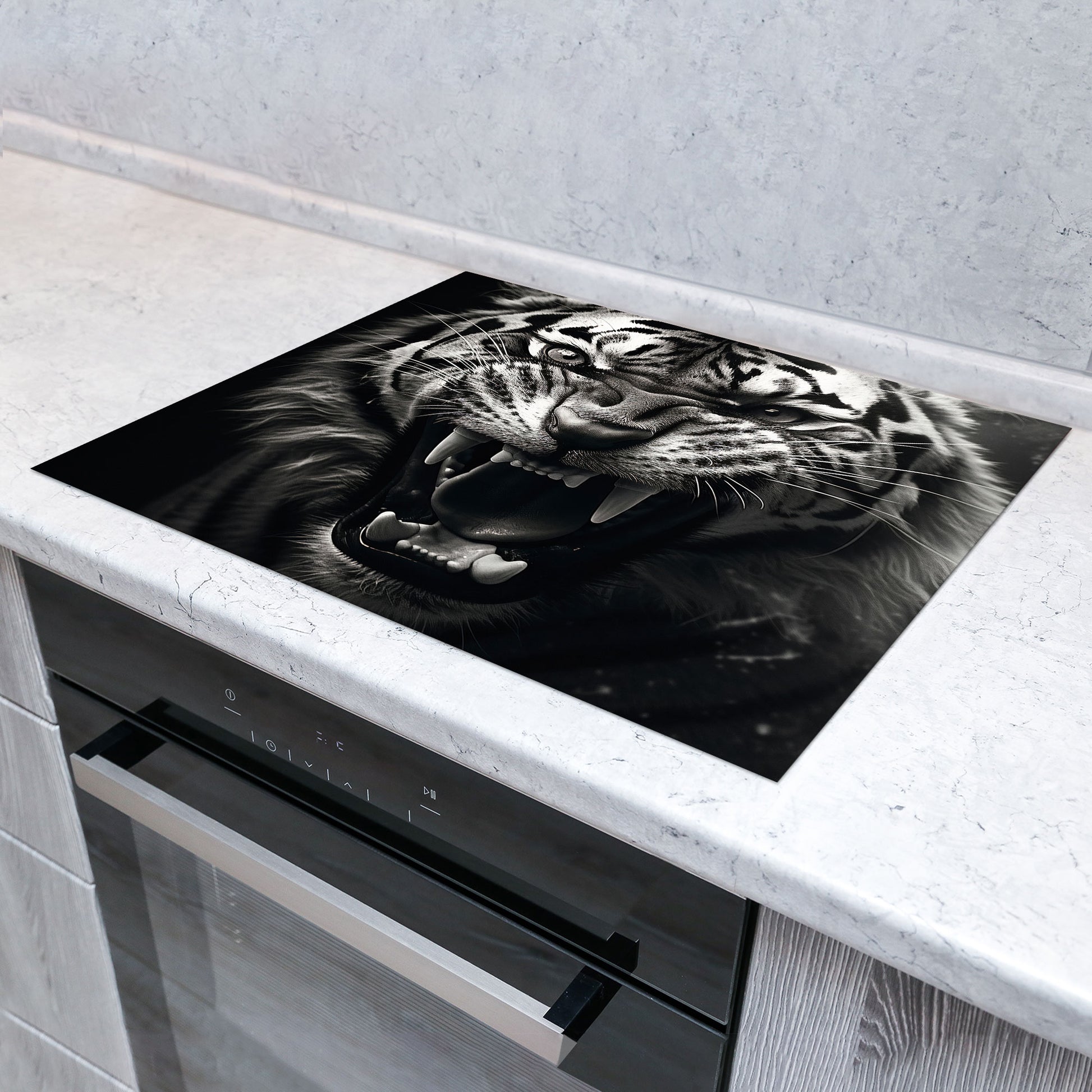 Tiger schwarz weiß Herdabdeckplatte Induktionsschutz für Ceranfeld & Küche Deko