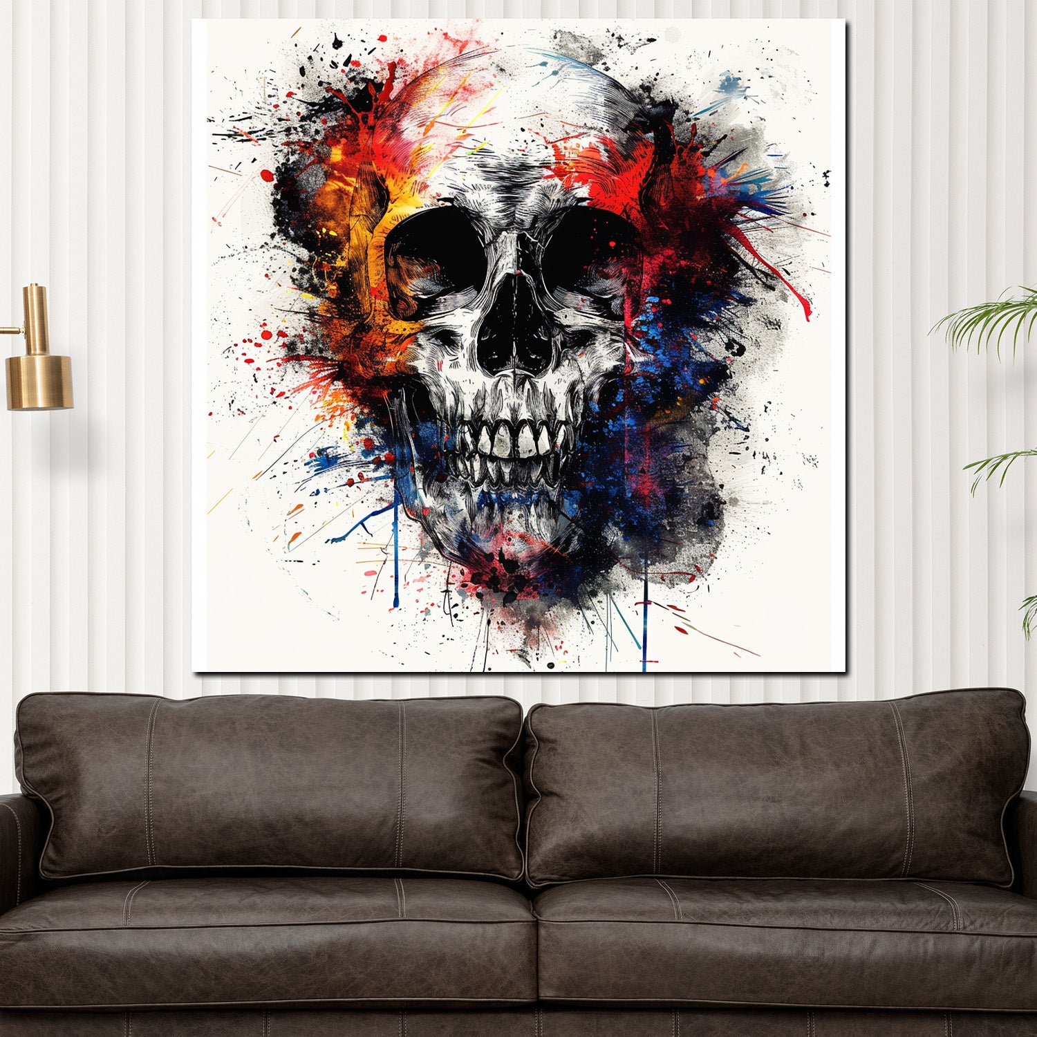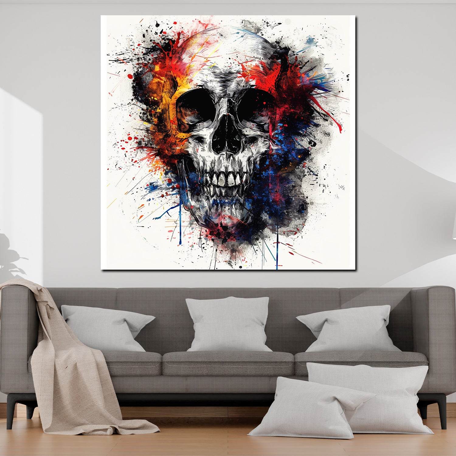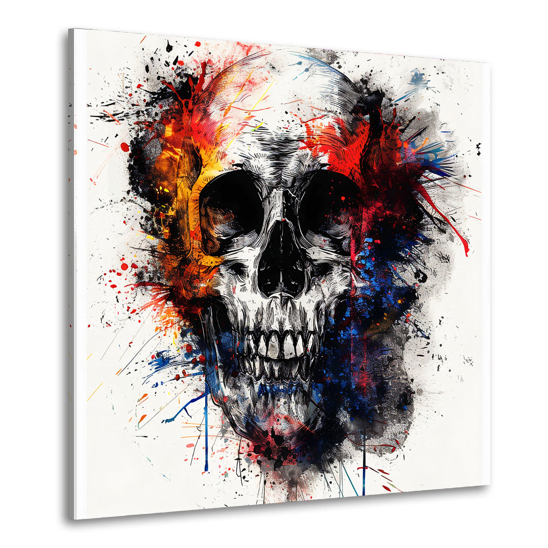 Wandbild abstrakt Totenkopf mit bunten Farbspritzern