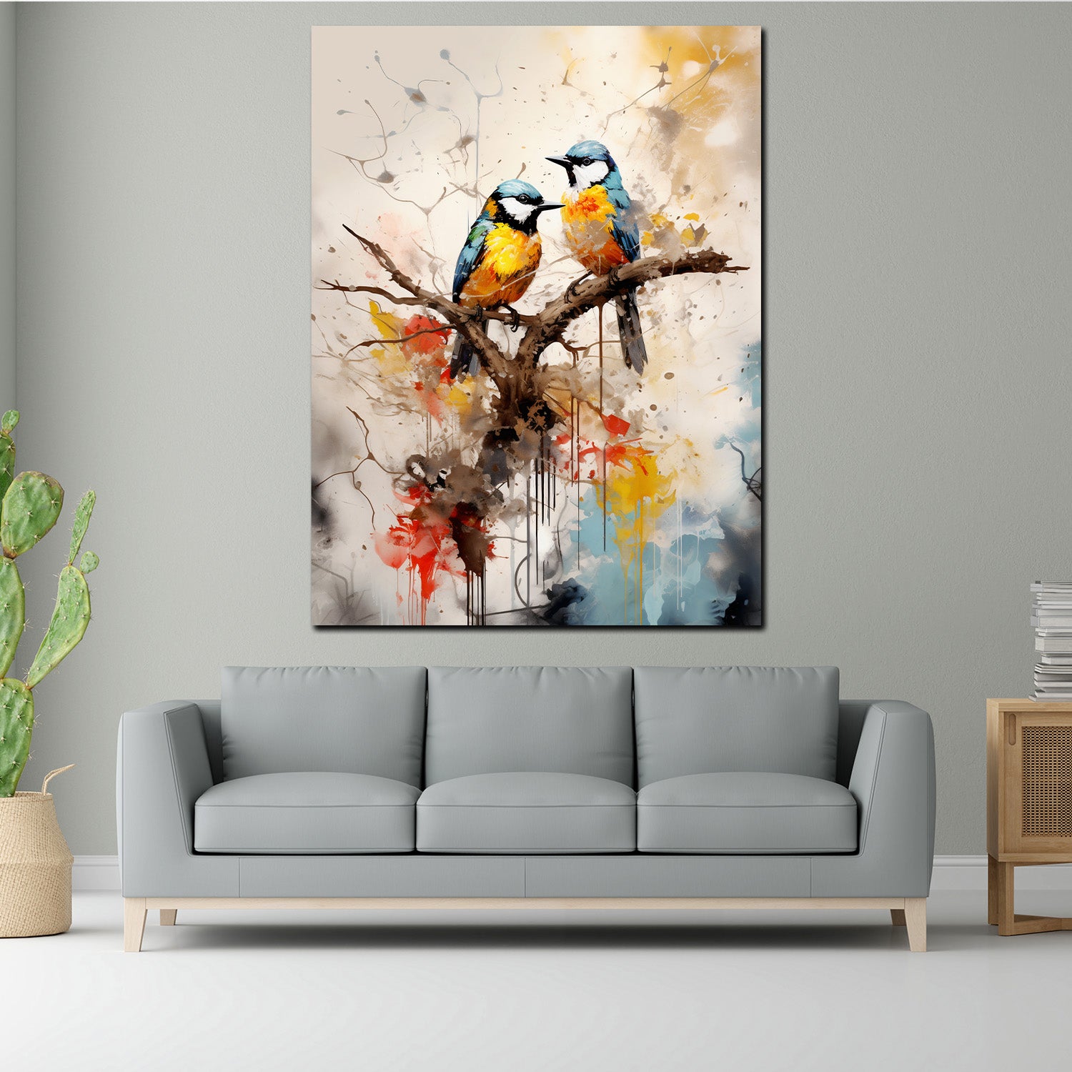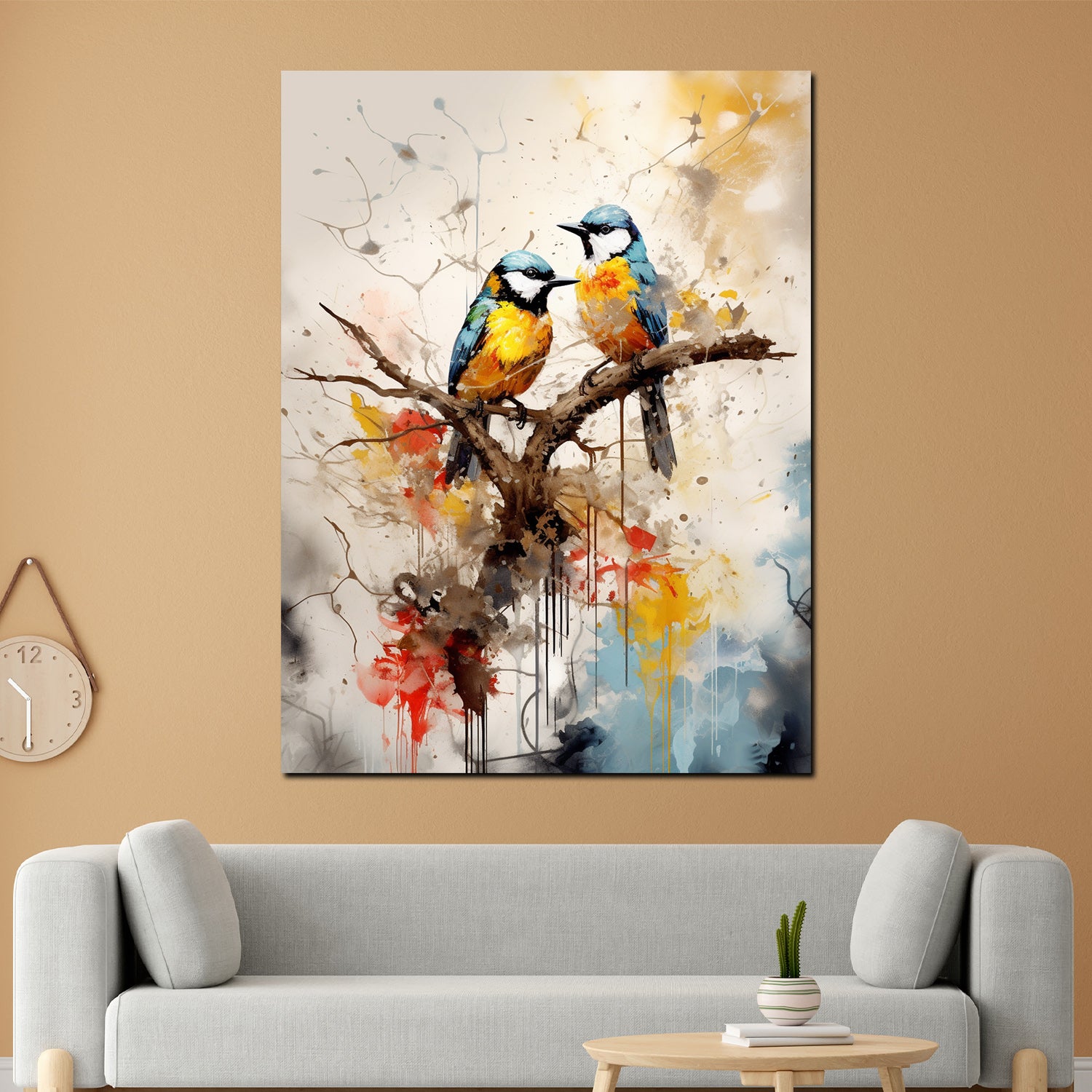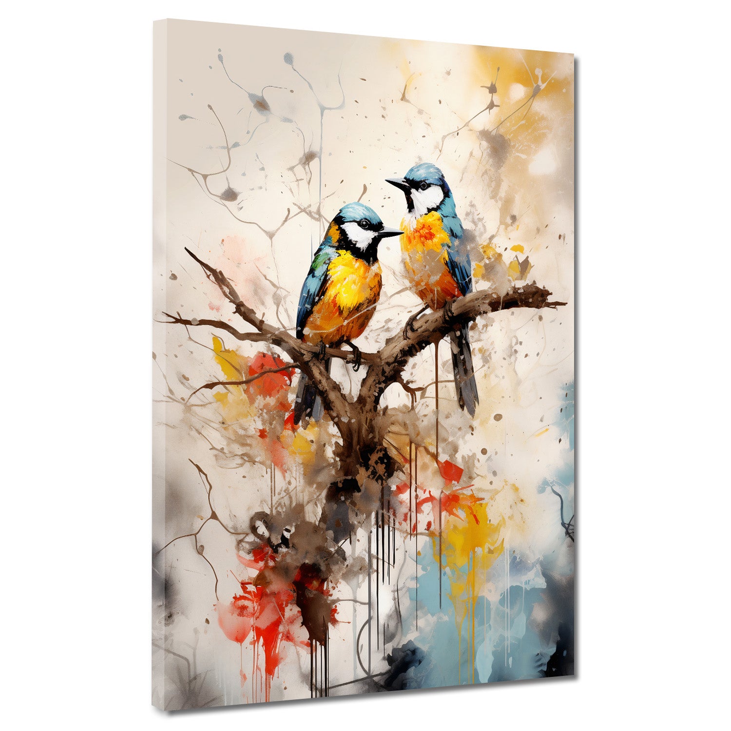 Wandbild abstrakt zwei Vögel auf einem Zweig
