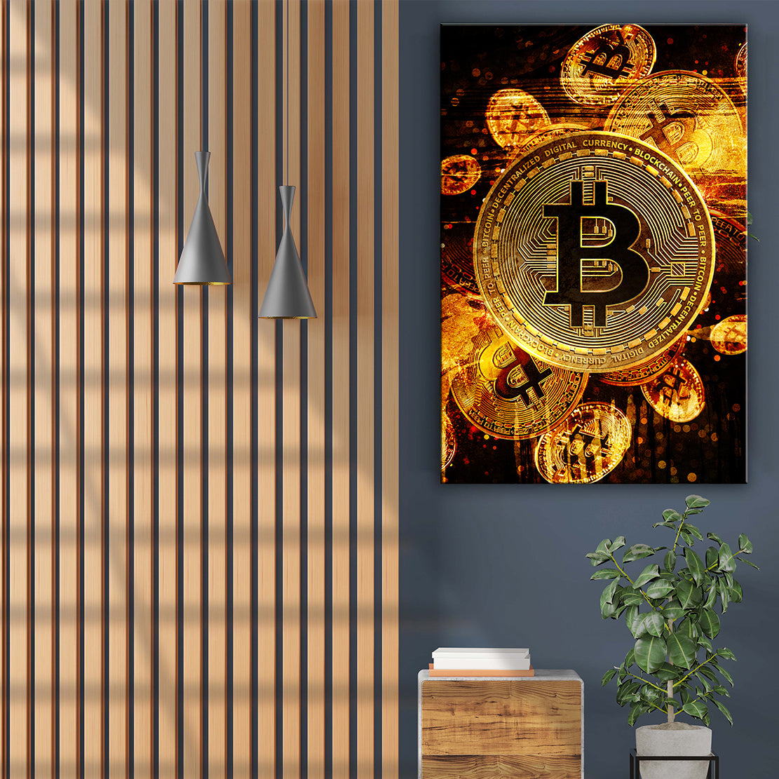 Wandbild Bitcoin Abstract Gold, Kryptowährung