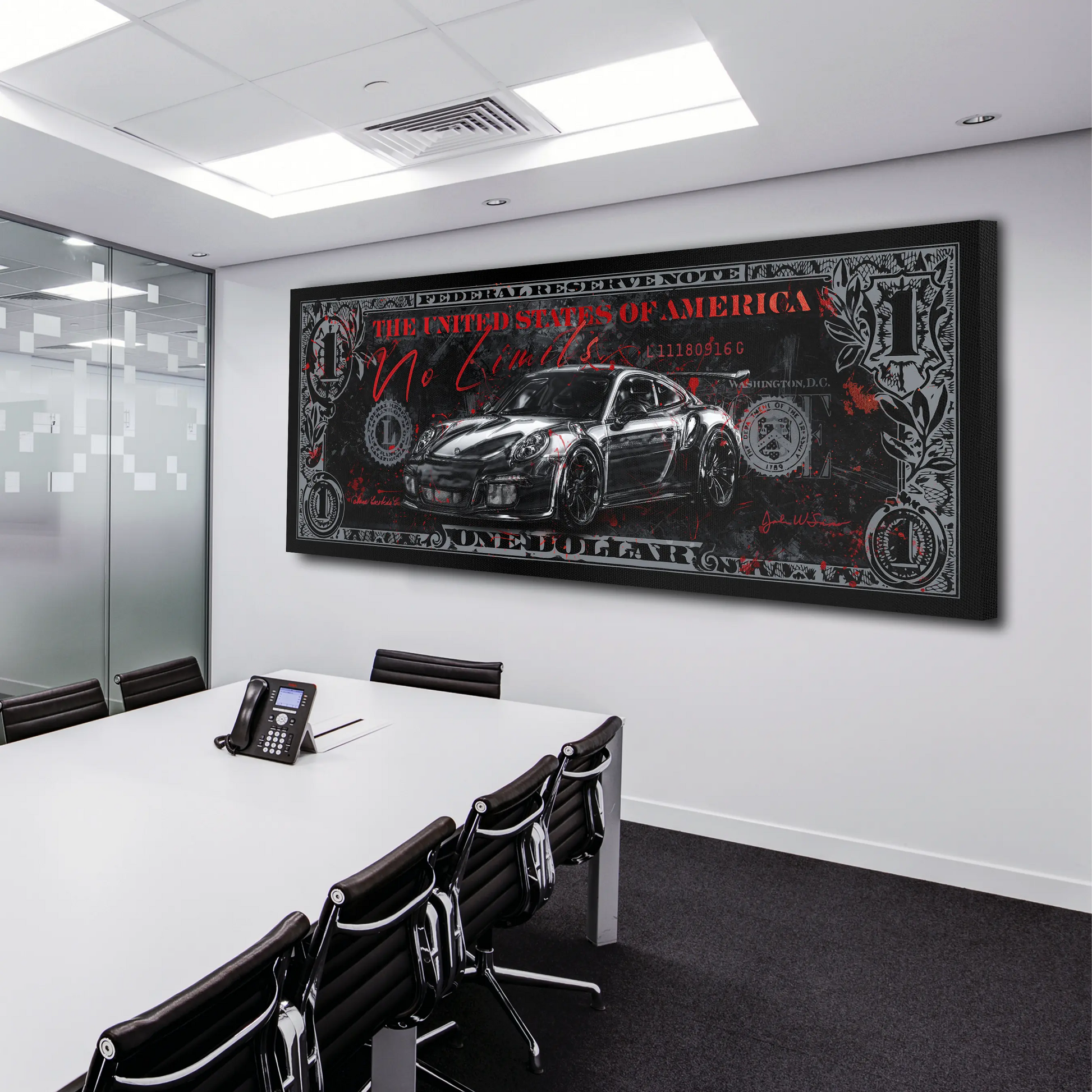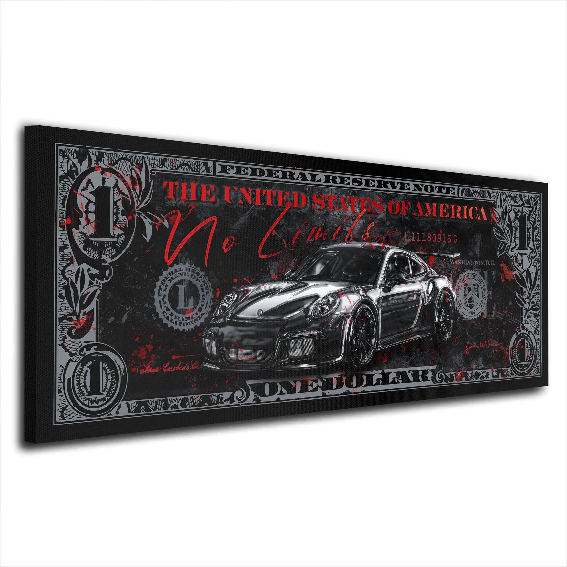 Wandbild Sportwagen Porsche Zitat No limits Silver Edition, Motivation