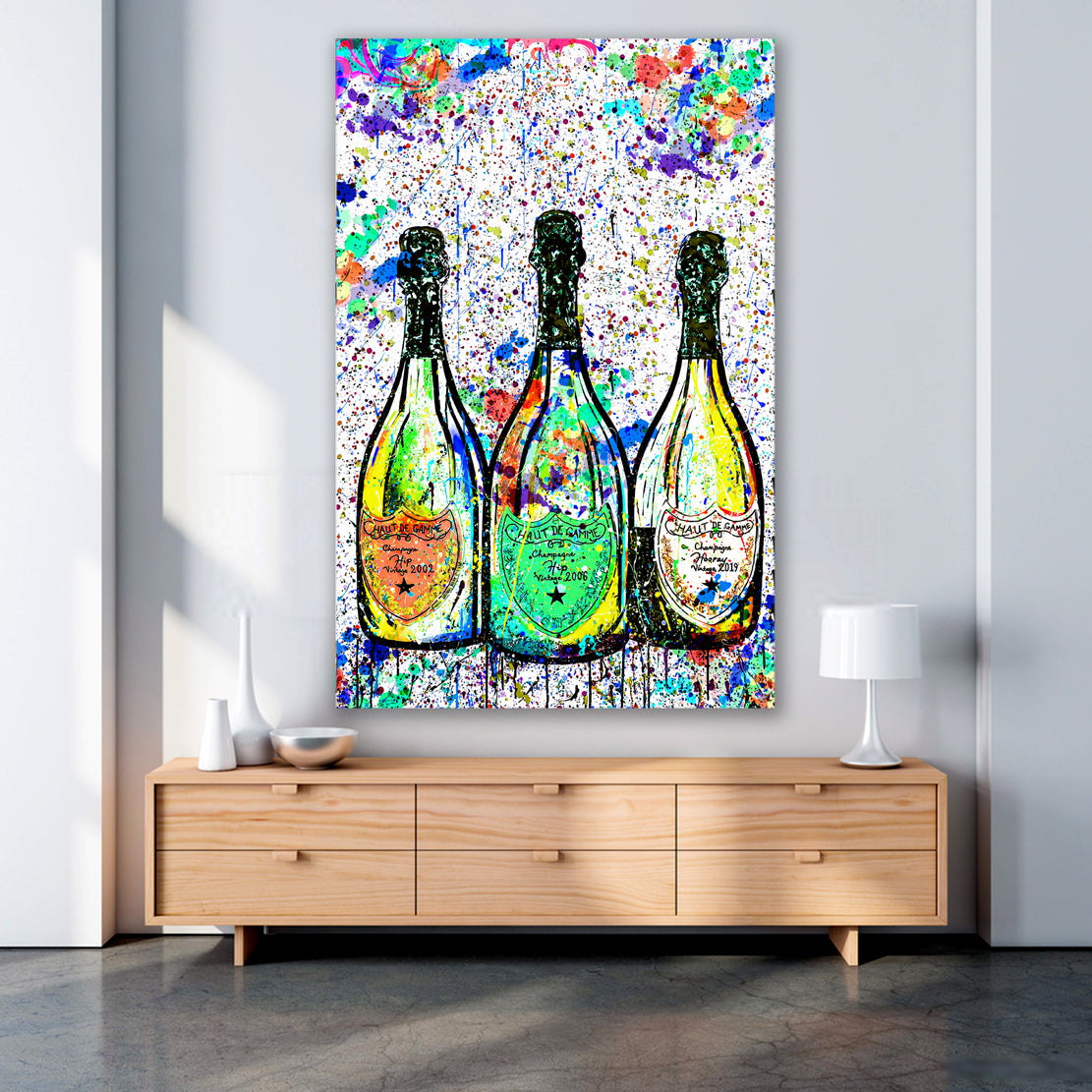 Wandbild Flaschen Champagner Pop Art Style