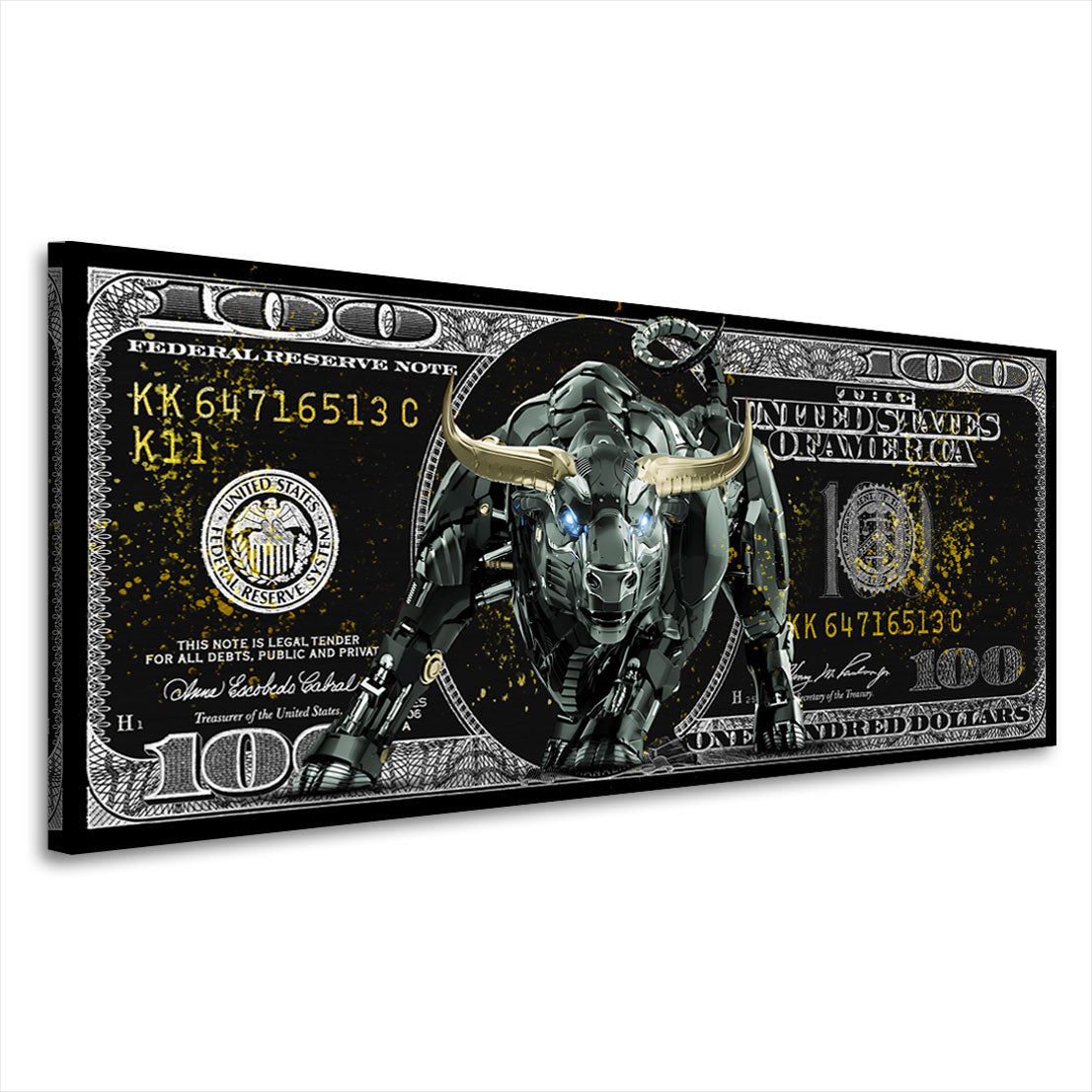 Wandbild Leinwandbild Kunstwerk Börse Trading Bull, Geld & Erfolg
