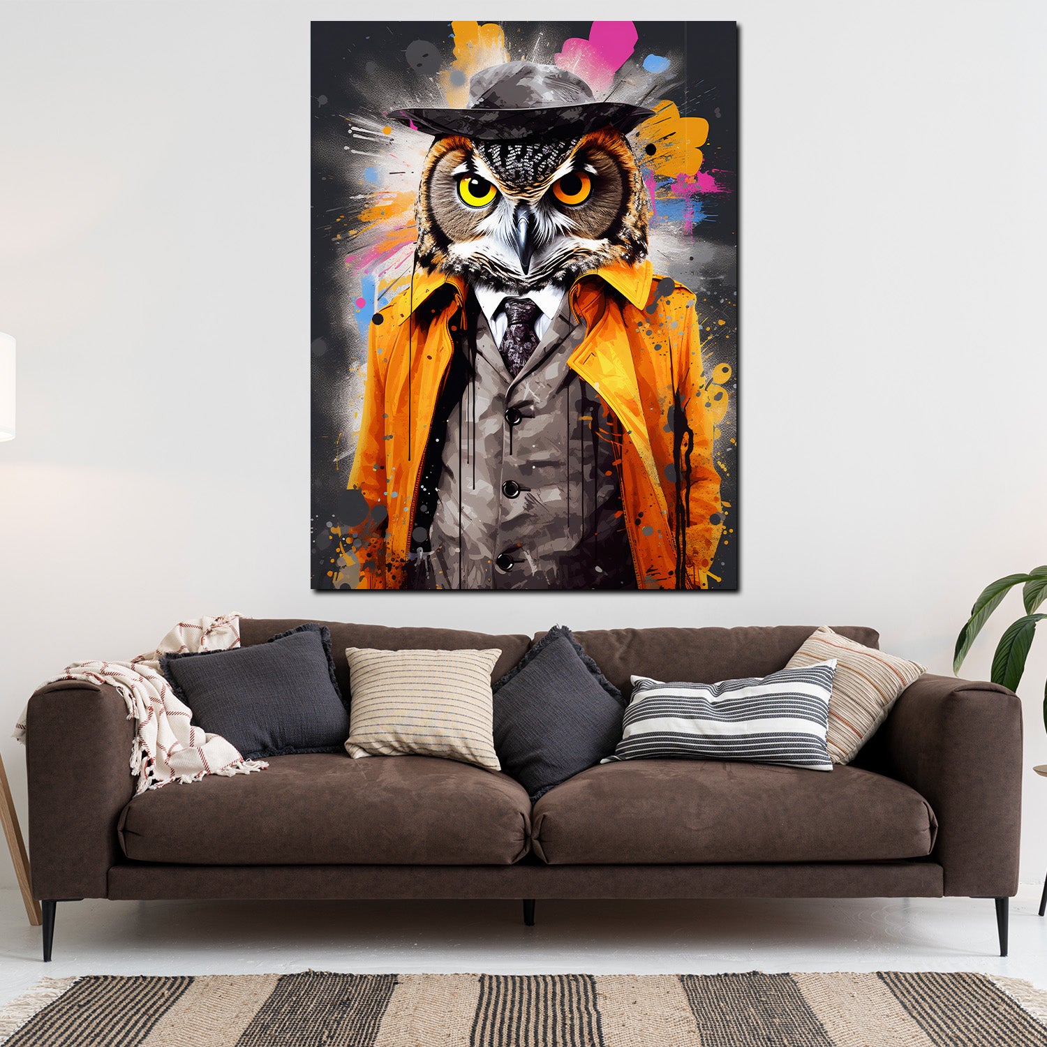 Wandbild Pop Art Eule im Anzug Colour Splash