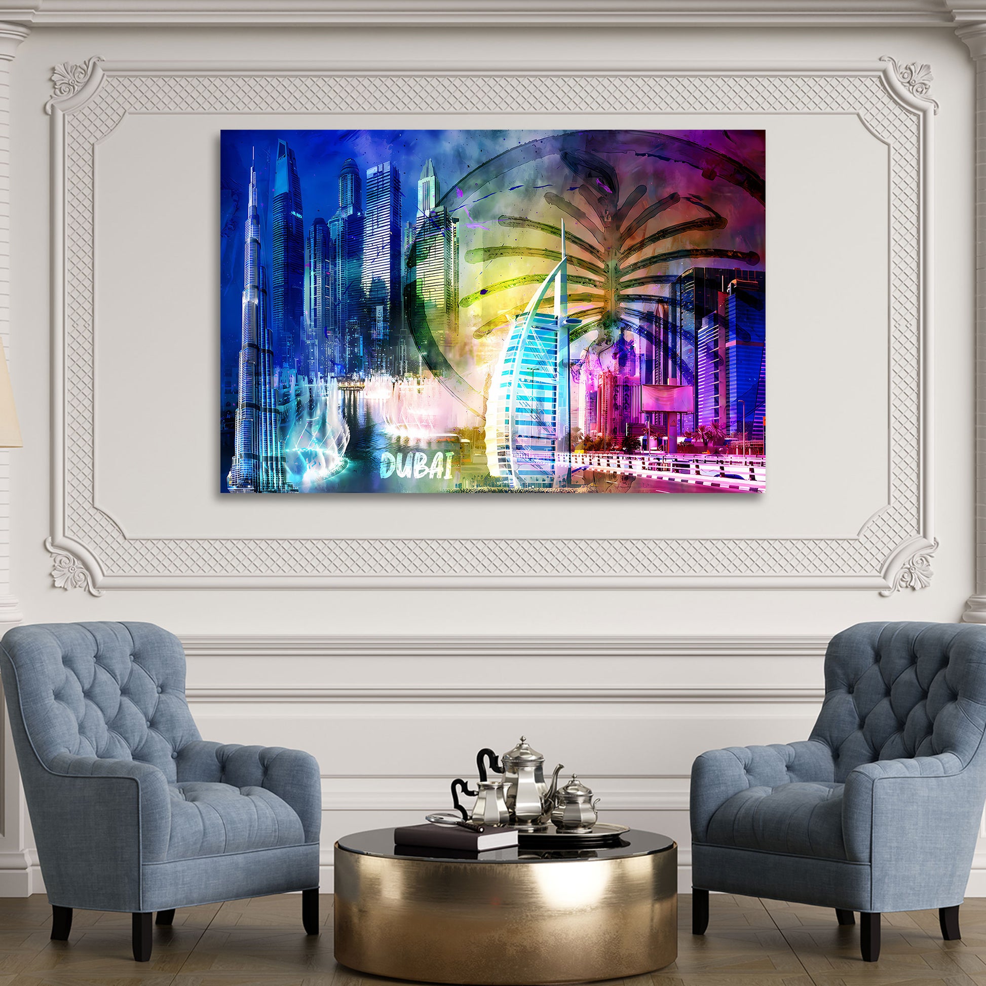 Dubai Skyline Pop Art Architektur modern Wandbild