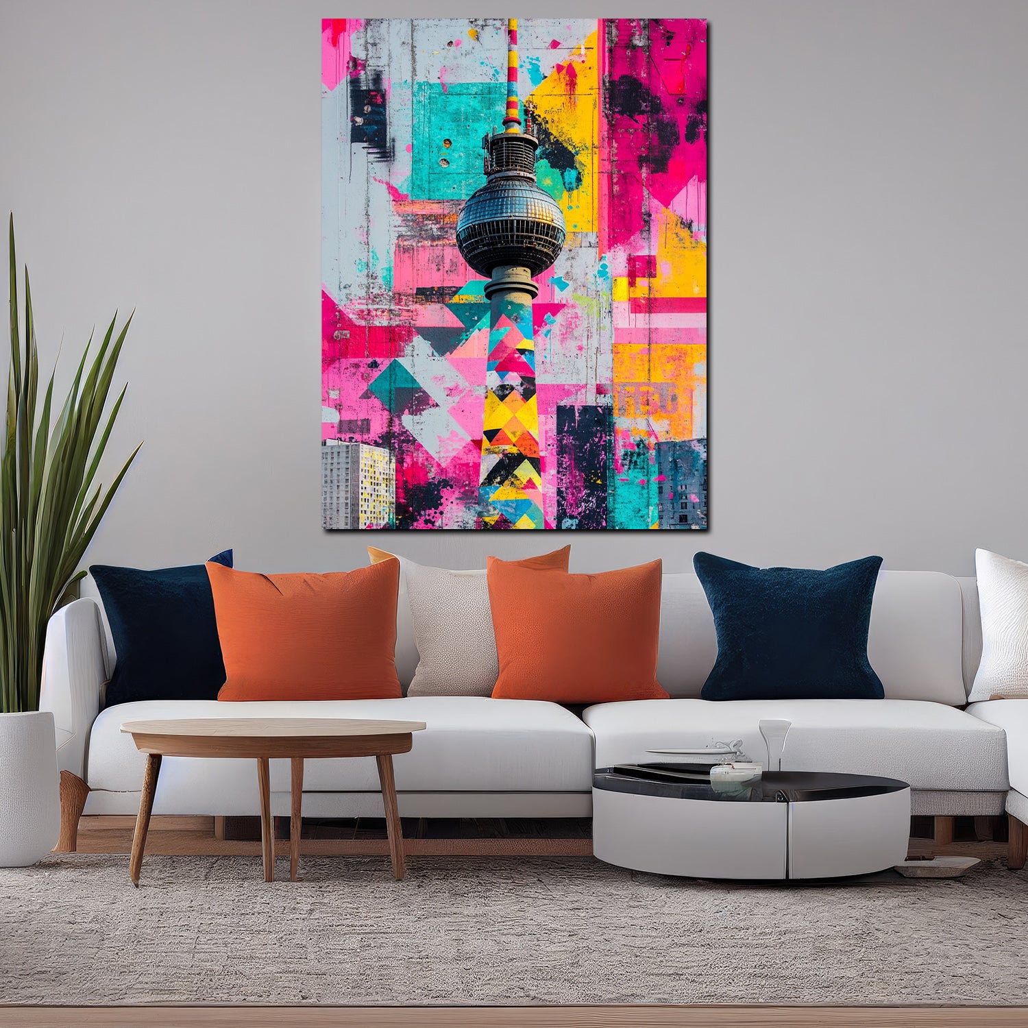 Wandbild Städte Pop Art Berlin Fernsehturm bunt urban