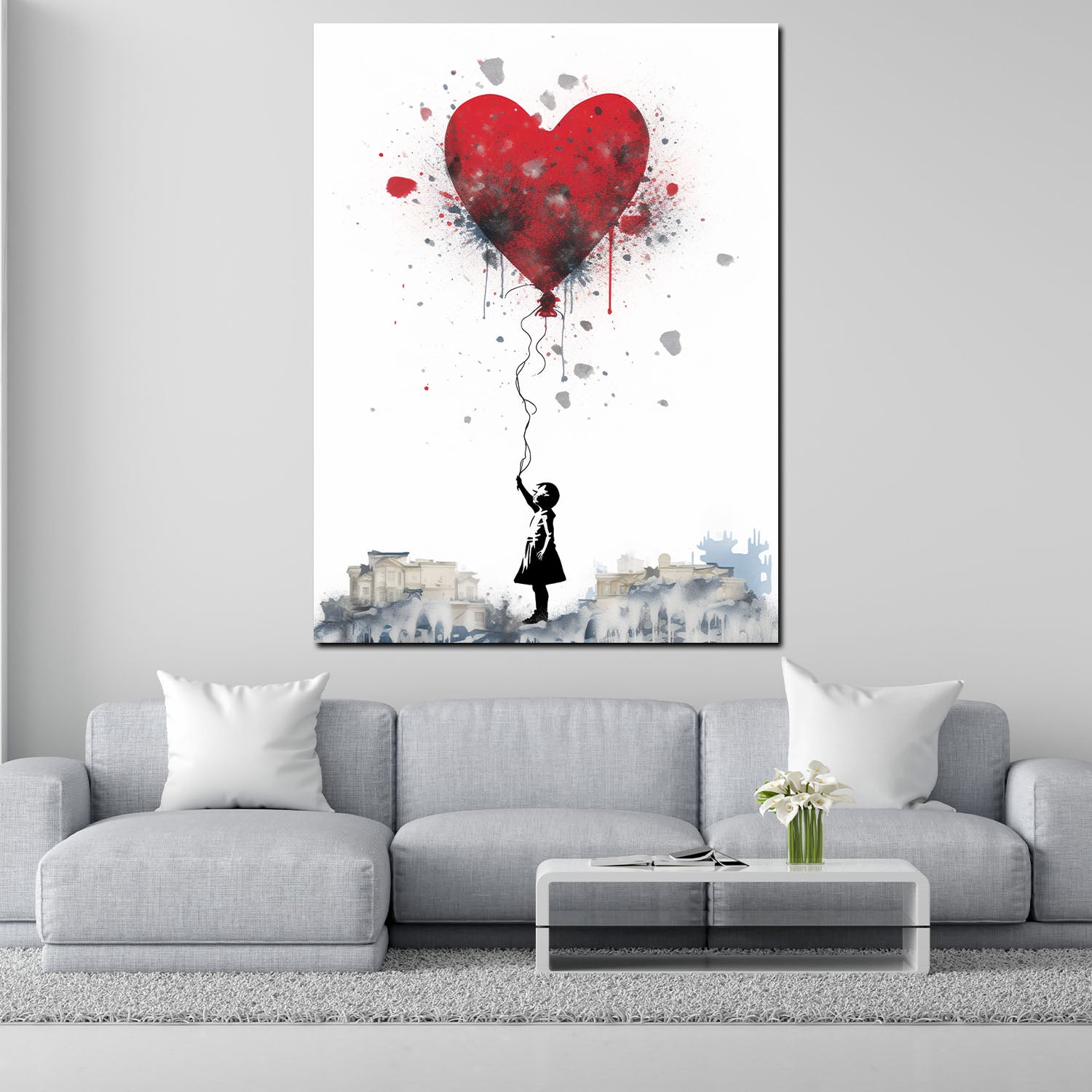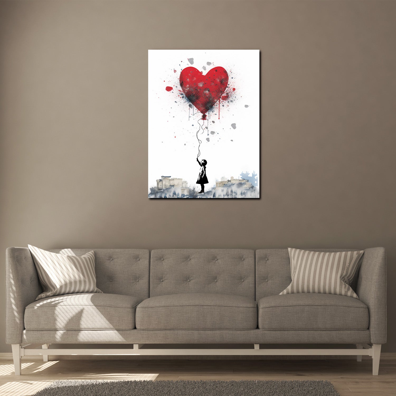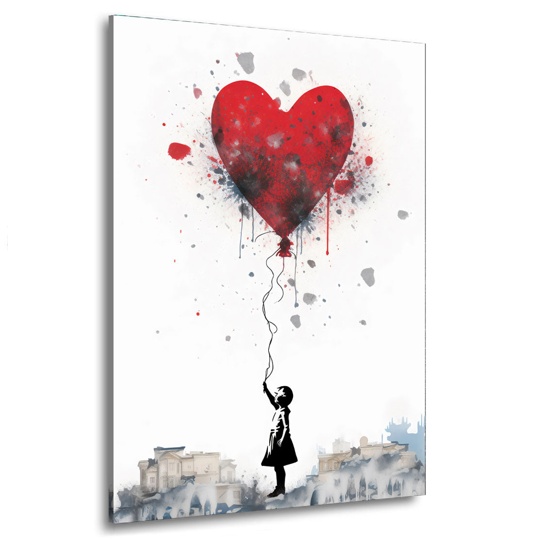 Wandbild Street Art abstrakt kleines Mädchen mit Herz Ballon