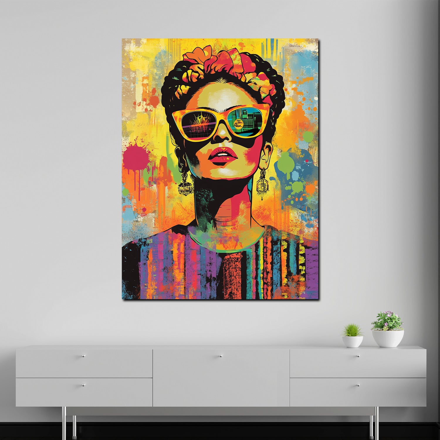 Wandbild stylische Frida mit Sonnenbrille Pop Art