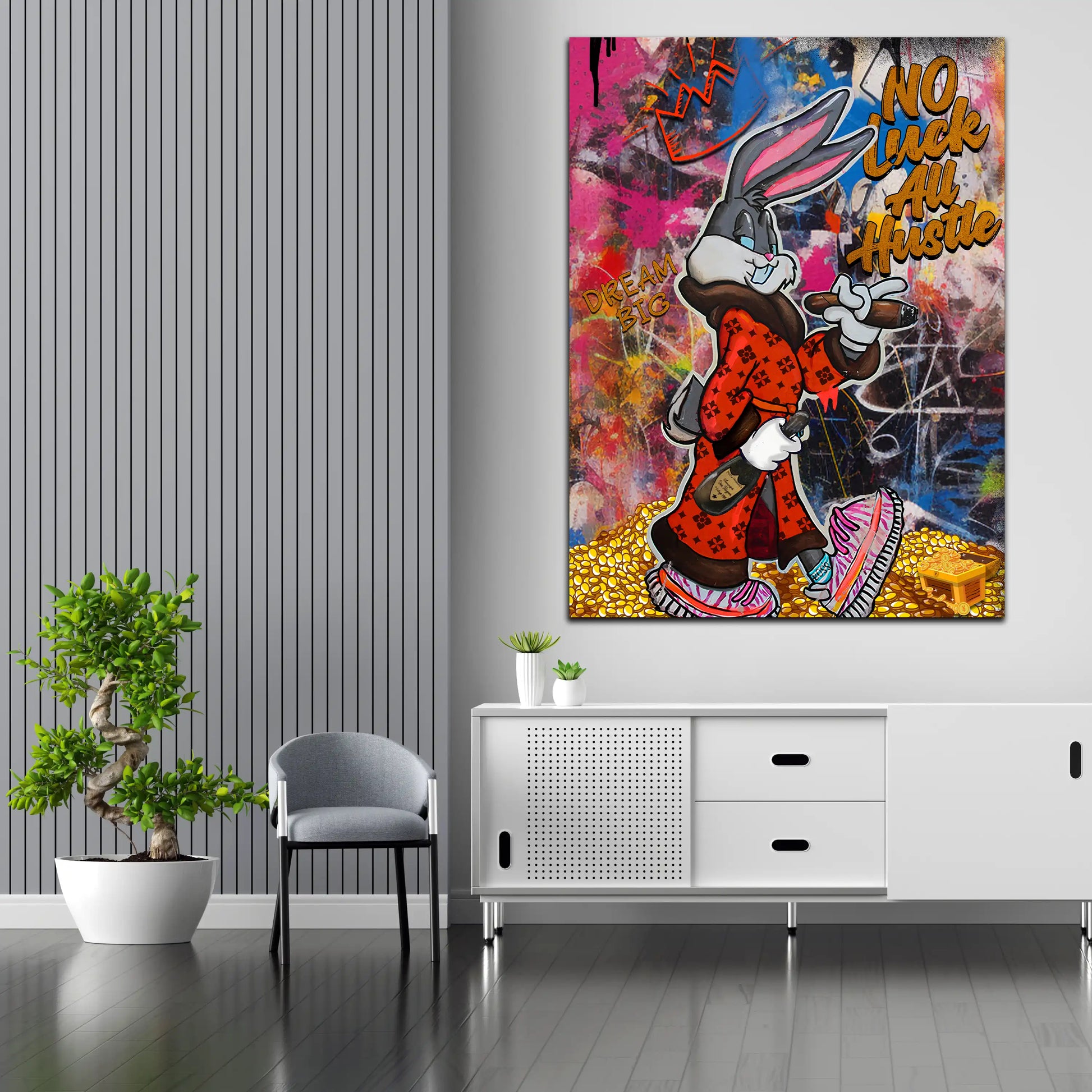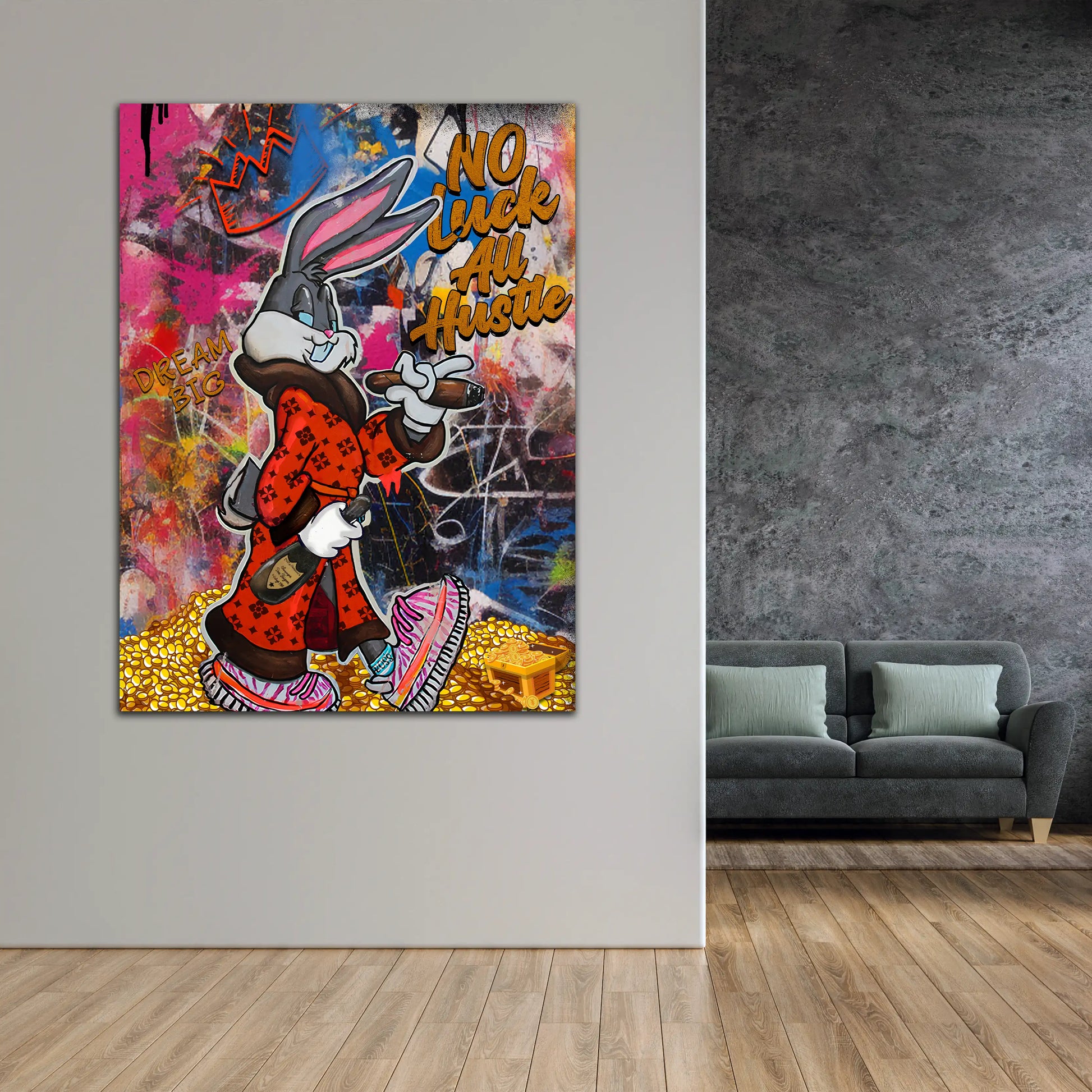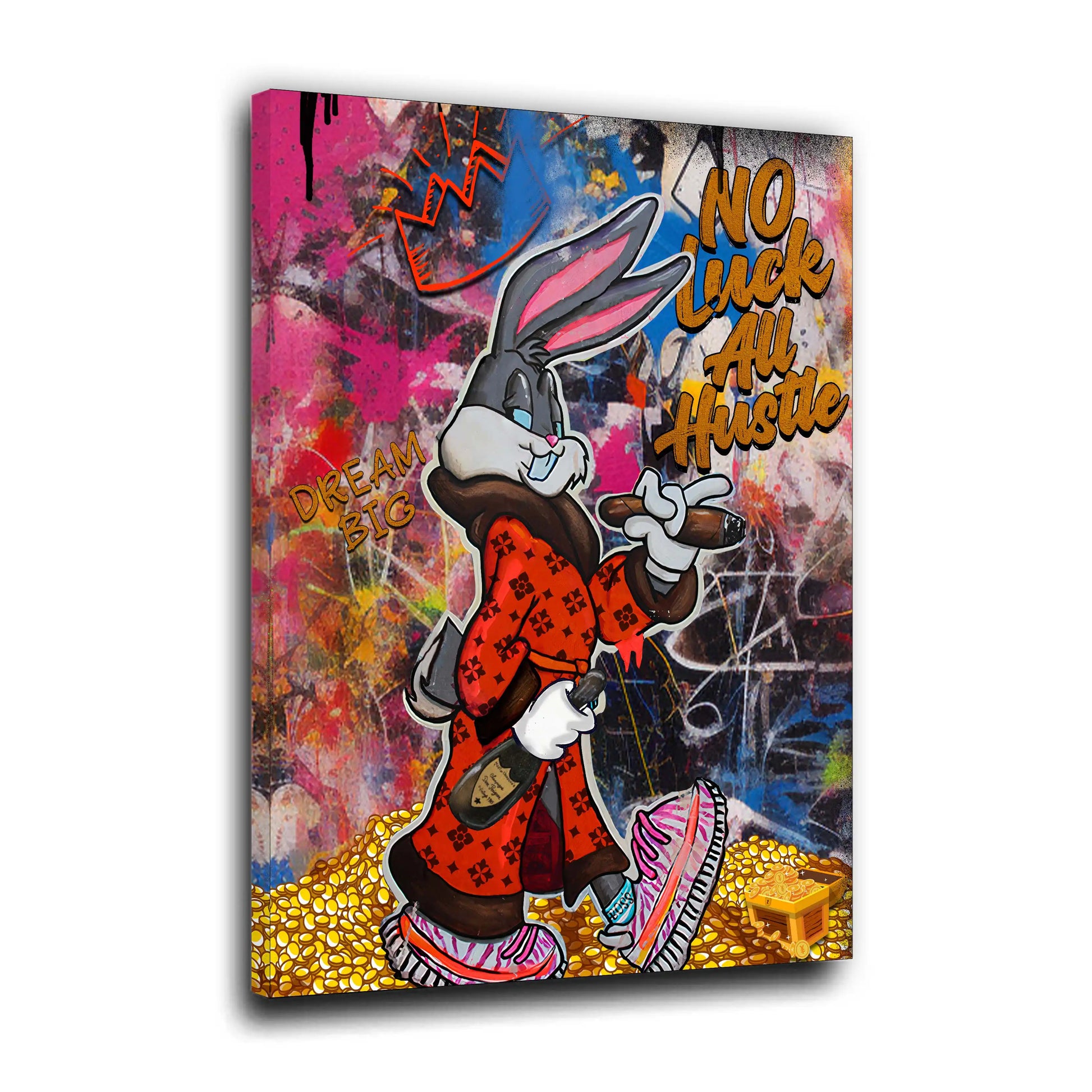Wandbild Comic Hase Motivation No Luck