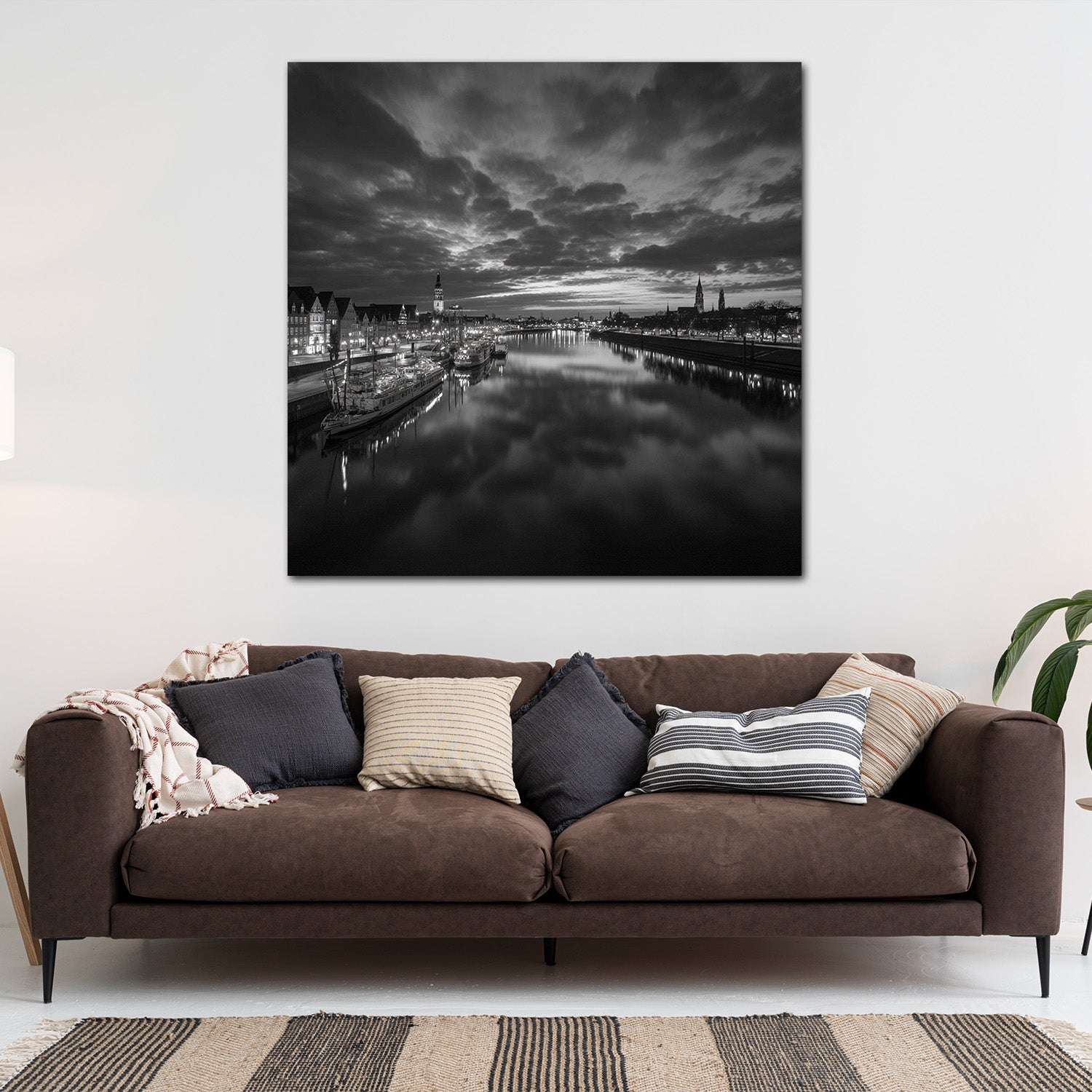 Weserblick Bremen schwarz weiß Abendstimmung Wandbild