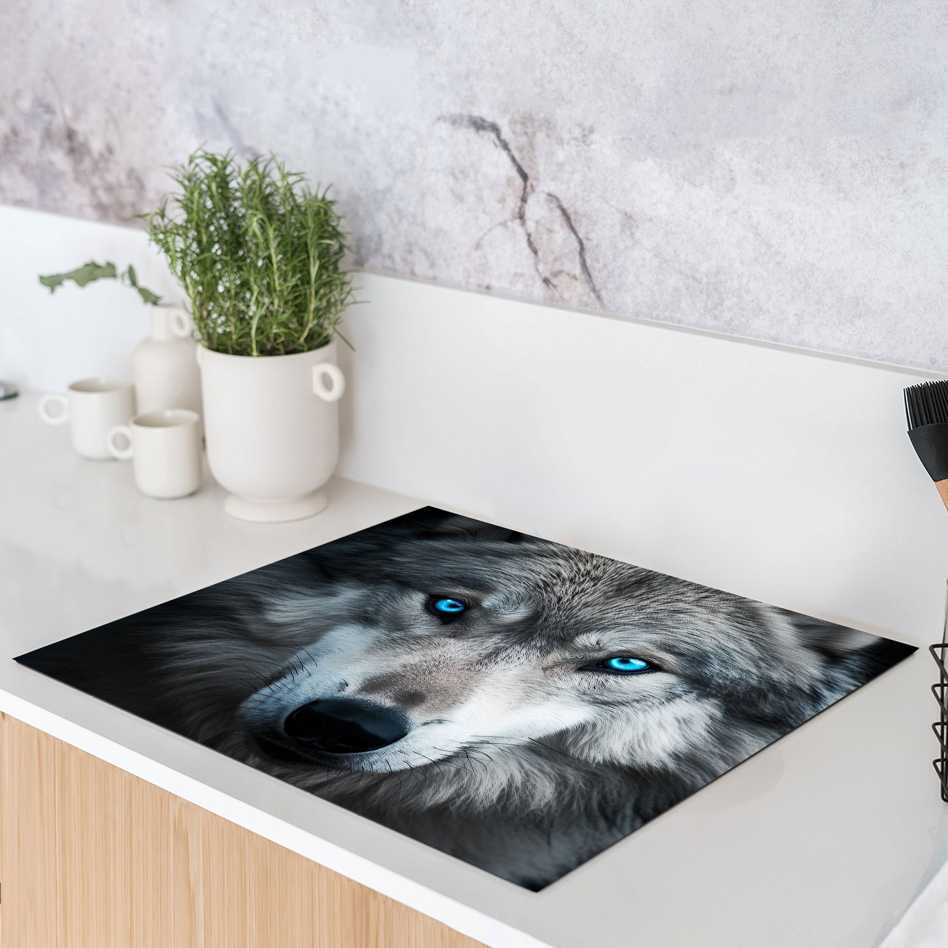 Wolf frontal Porträt Herdabdeckplatte Induktionsschutz für Ceranfeld & Küche Deko
