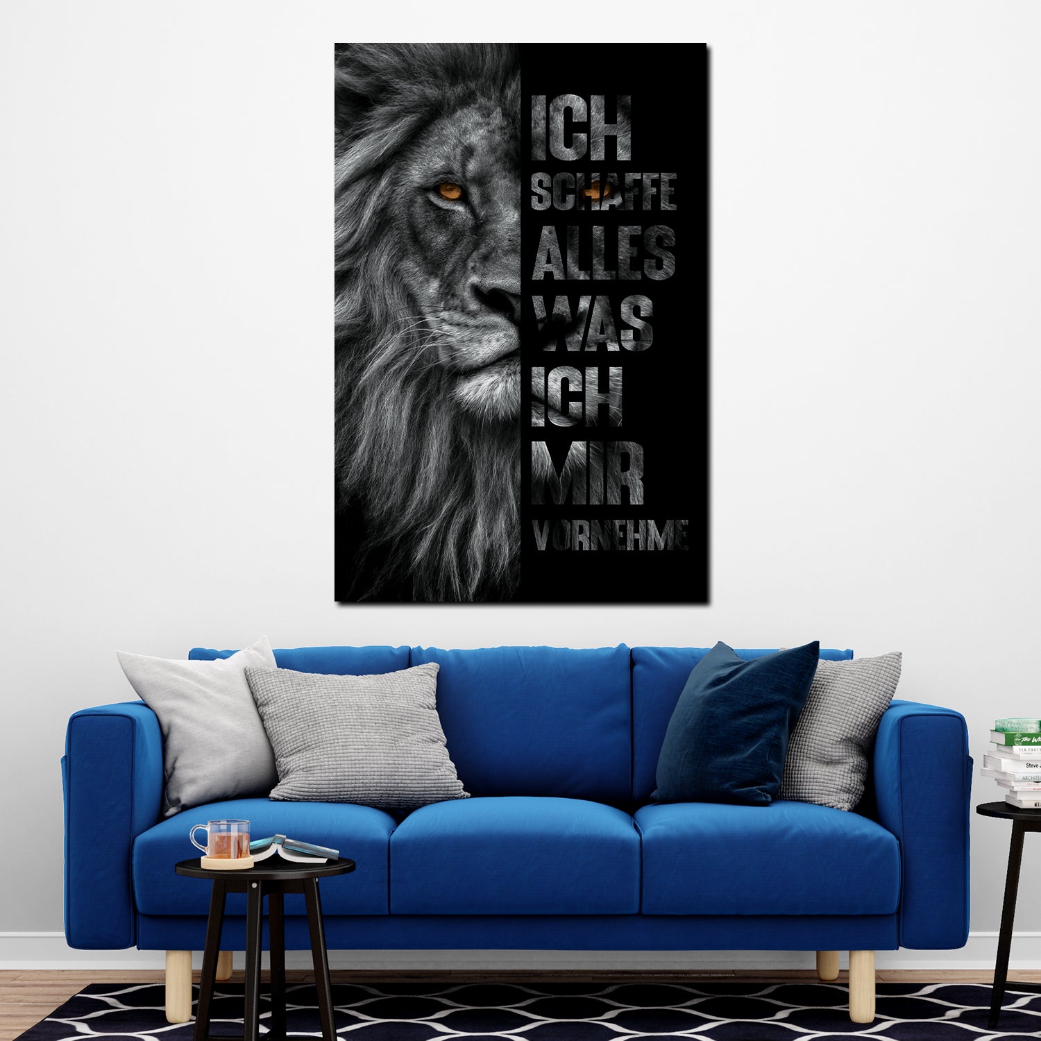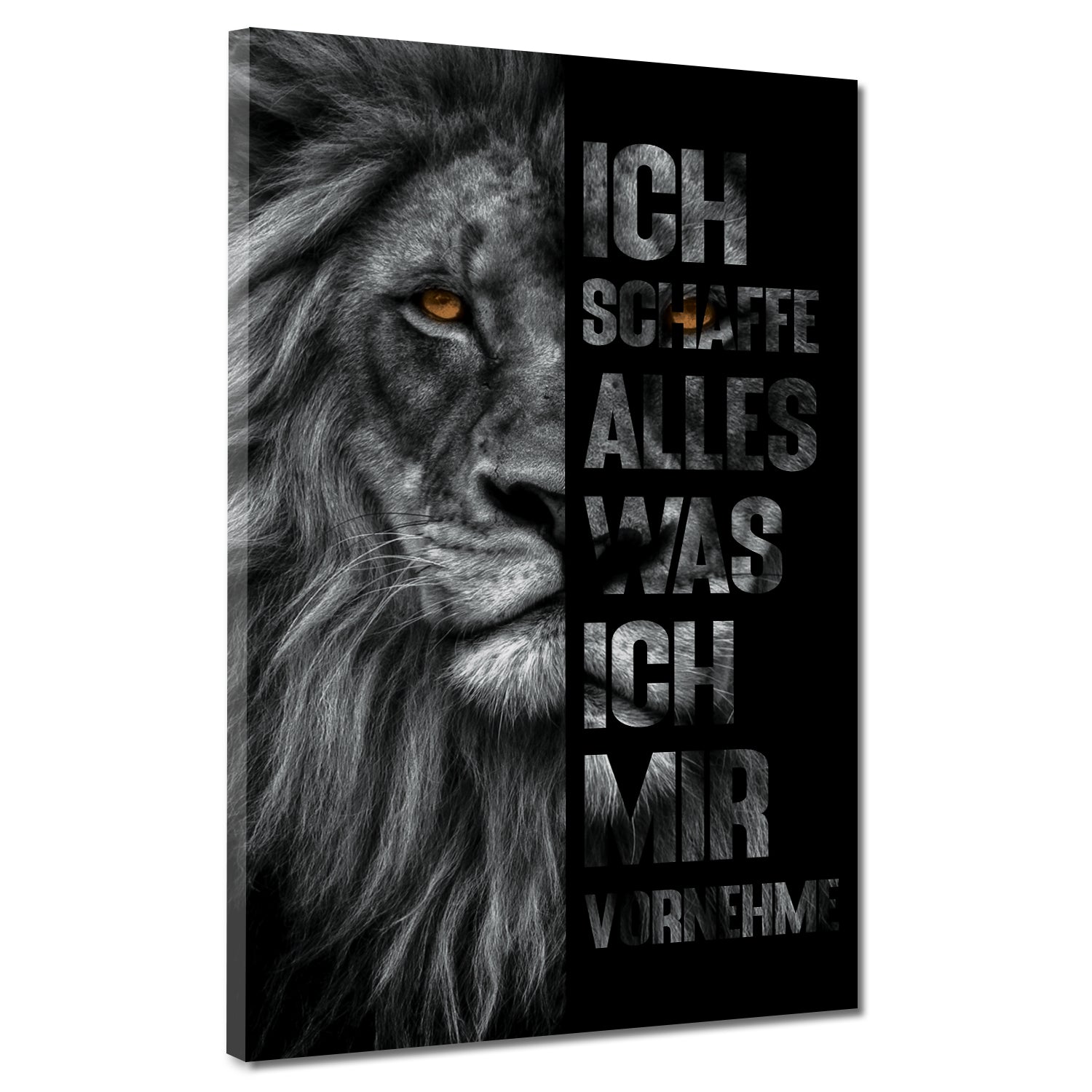 Zitat schwarz weiß Löwenkopf Motivation Wandbild